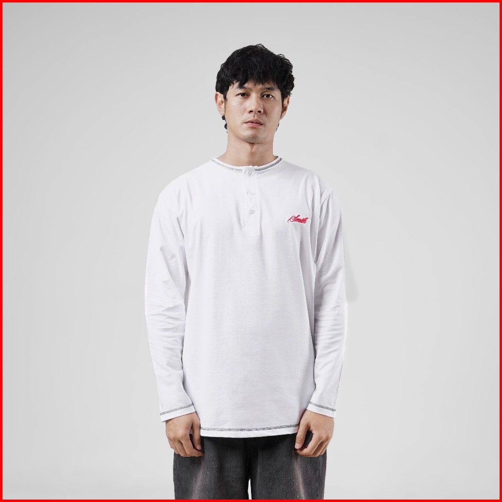 House Of Smith Kaos Pria Lengan Panjang - Smith Long Sleeve Henley White - T Shirt Long Sleeve Henley