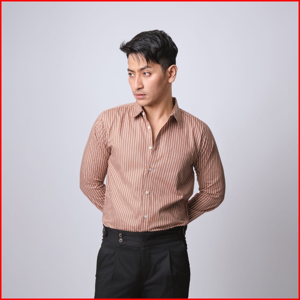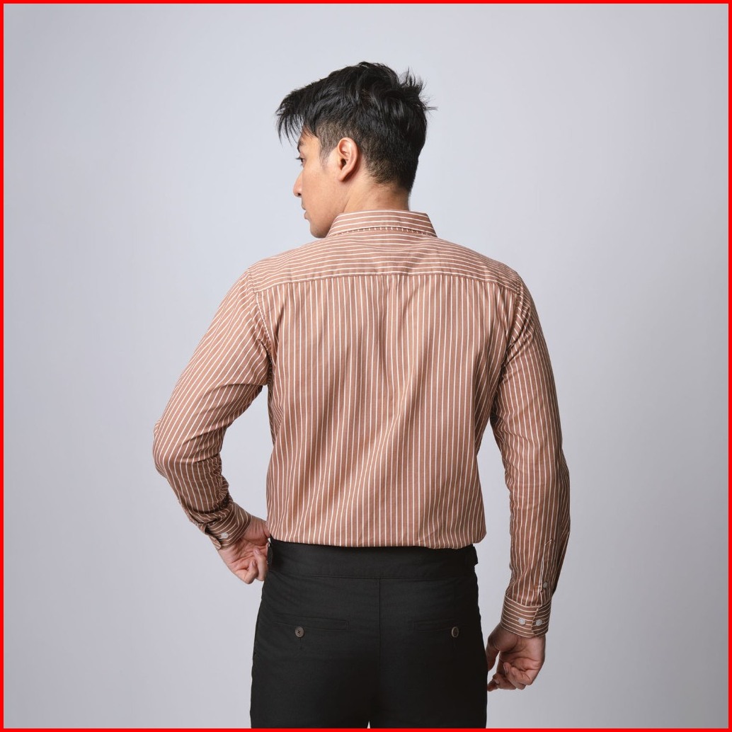 Vengoz Kemeja Pria Slim Fit - Hugo Stripe Shirt Brown Ls