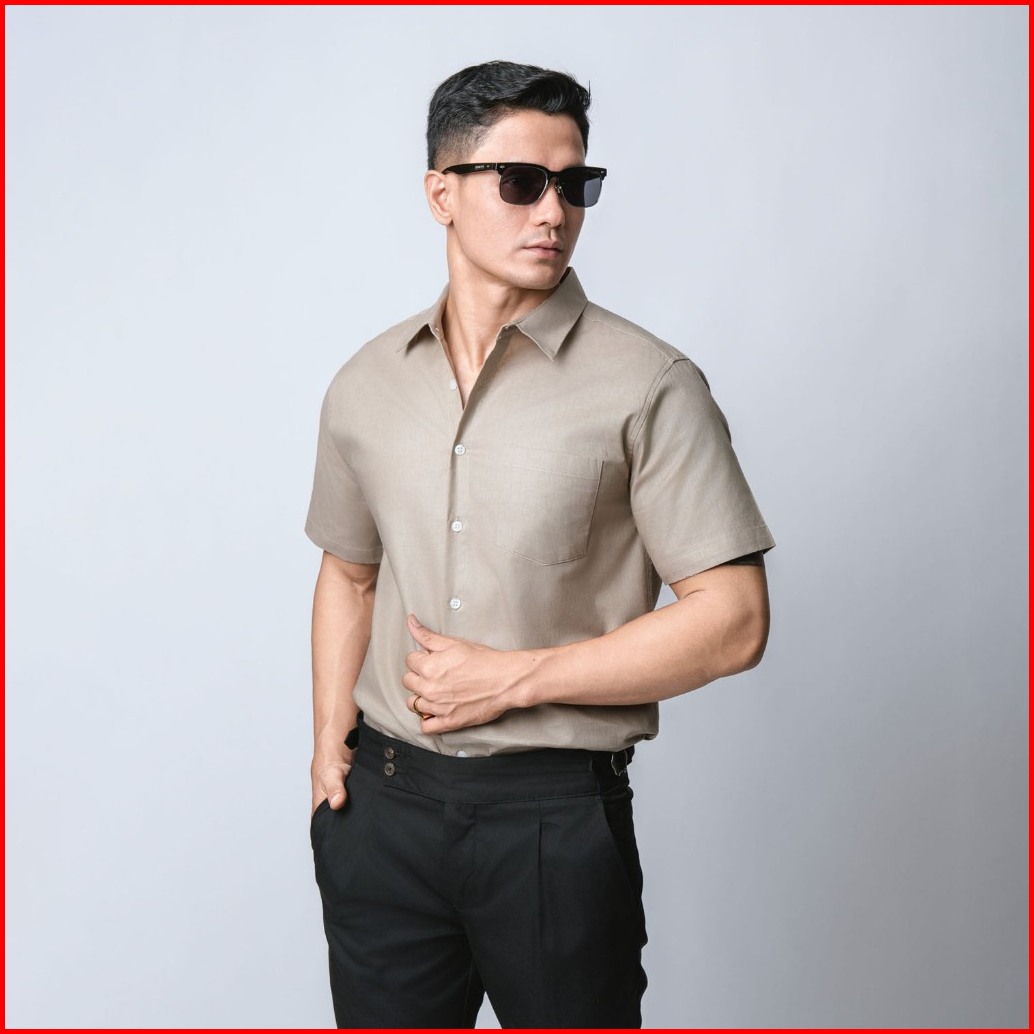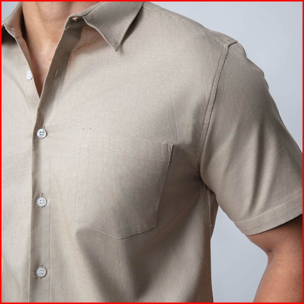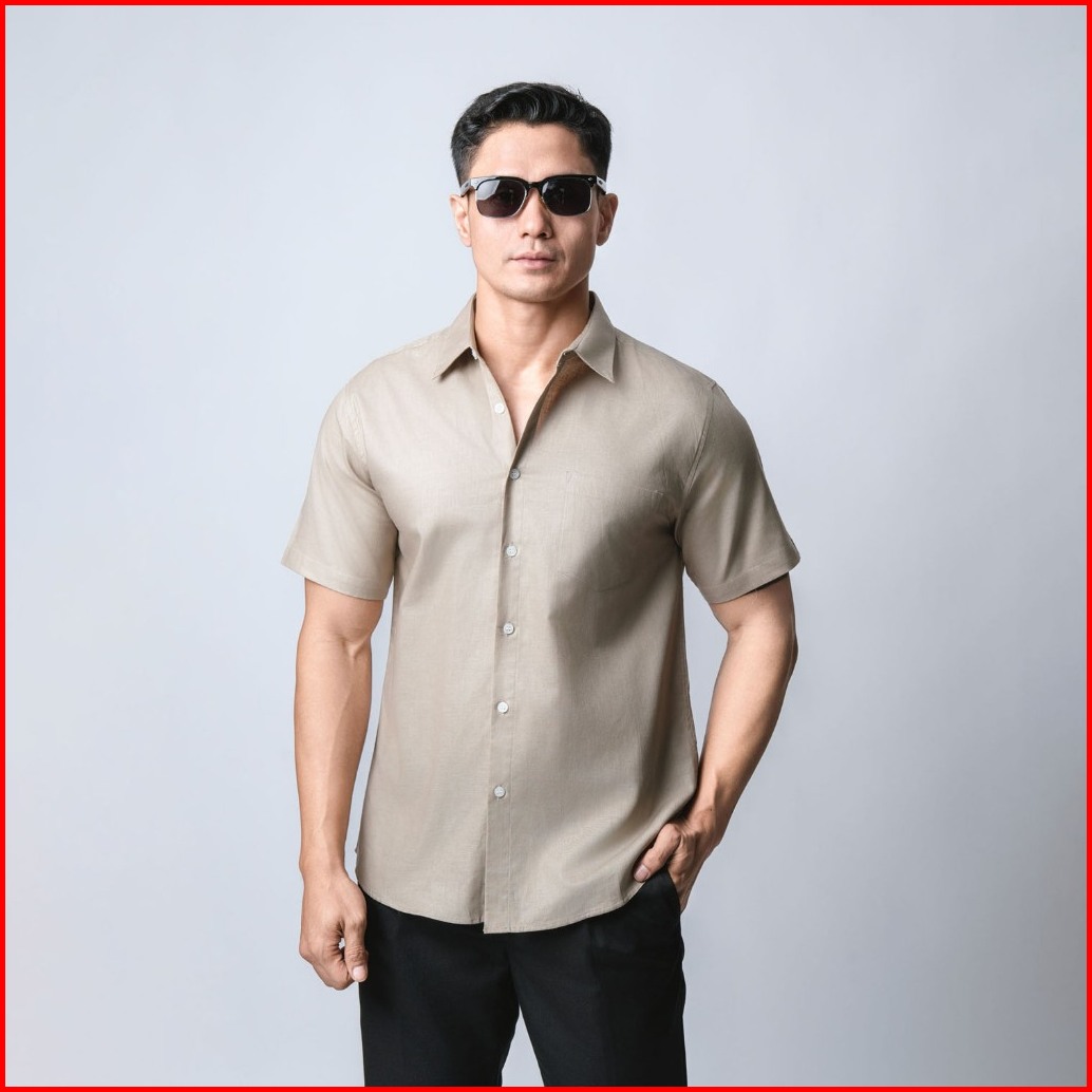 Vengoz Kemeja Pria Basic Rami Linen Look - Beige Ss