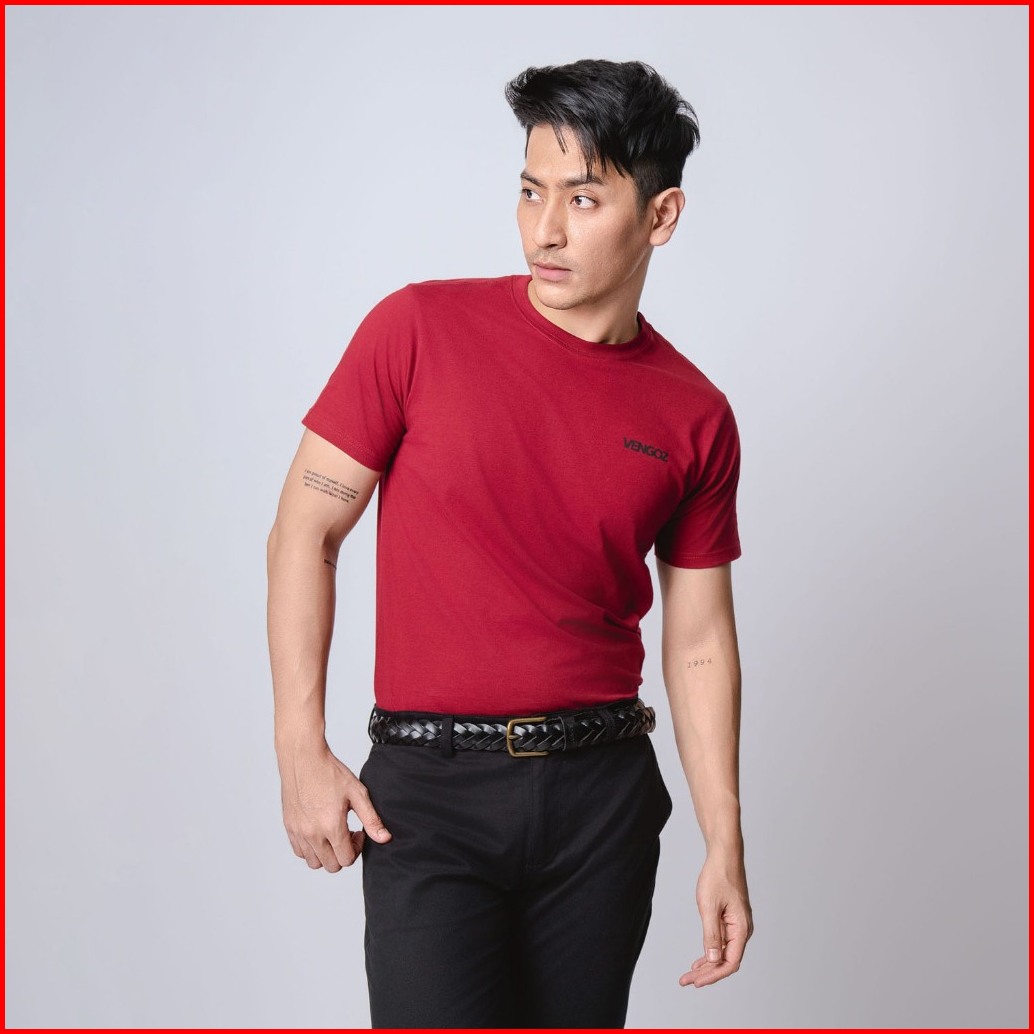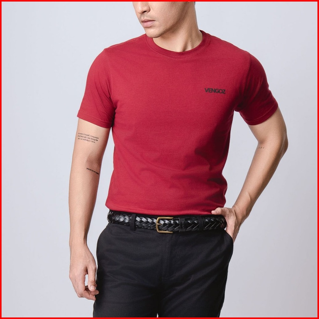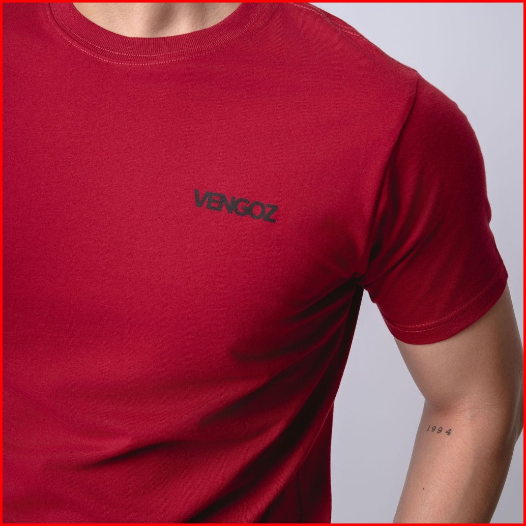 Vengoz - Kaos T-shirt Pria Minimal Logo Dark Red