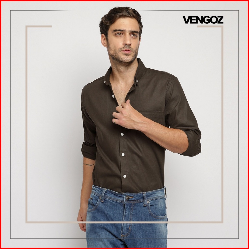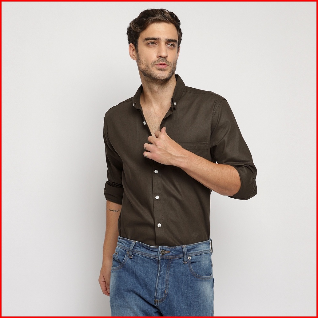 Vengoz Kemeja Pria Oxford Premium Slim Fit - Hickory Brown