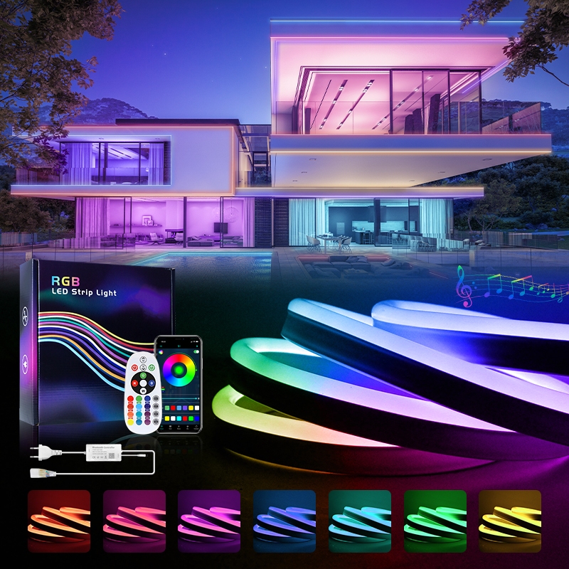 Lampu LED Neon Fleksibel 220V RGB untuk Dekorasi Kamar Tidur Aesthetic, Tahan Air 3M-20M