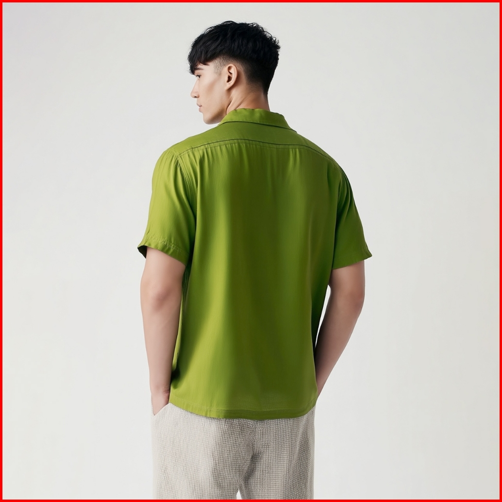 Vengoz Kemeja Pria Pendek Polos Cuban Shirt - Olive Green