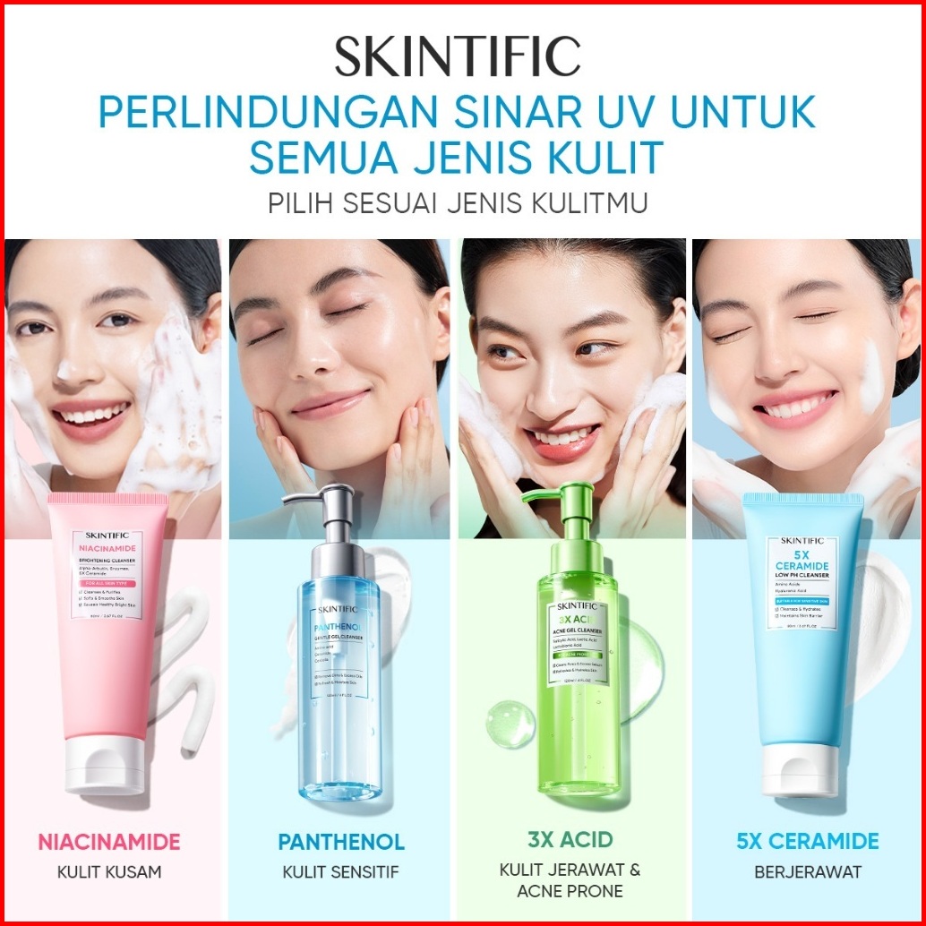 Skintific Authorized Cleanser Collection Panthenol Gentle Gel Cleanser 120ml Amino Acid Gentle Cleansing Mousse 100ml Wh