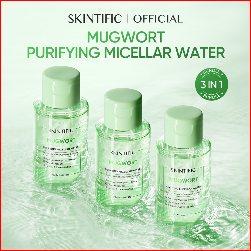 Skintific Authorized Mugwort Purifying Micellar Water 300ml Pembersih Cleanser Makeup Sekali Bersih Total Tanpa Residu T