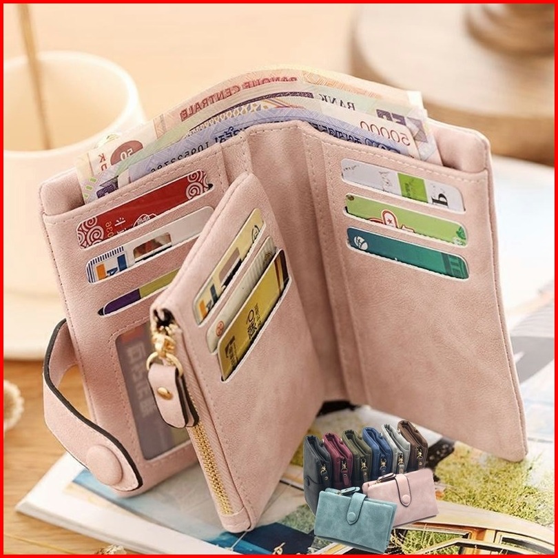 Portabilitas Wanita Buram Halus Kartu Wallet Kartu Dompet Wanita Buram Baru Dompet Dompet Lipat