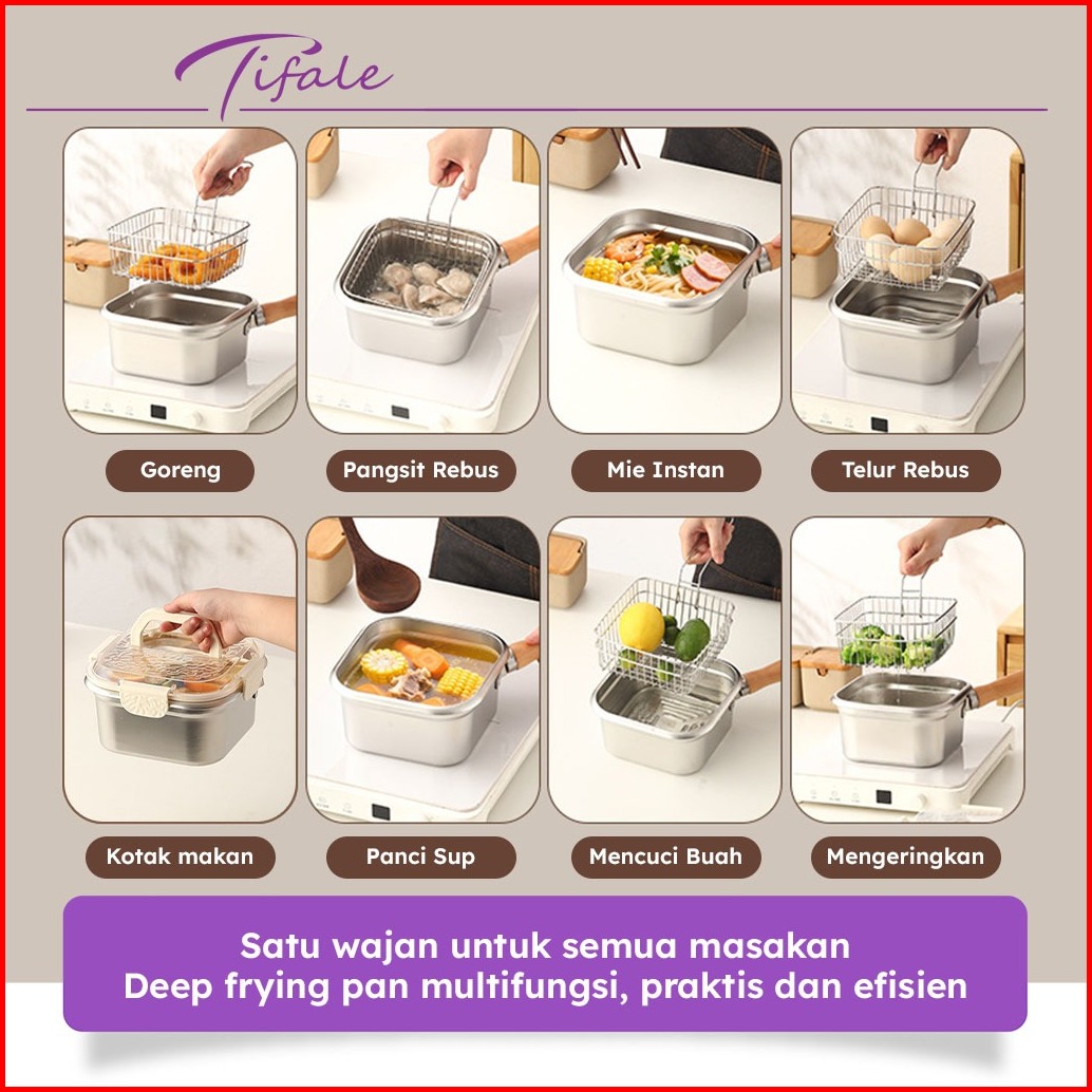 Tifale Squira Deep Frypan Stainless Steel Panci Kotak Anti Lengket