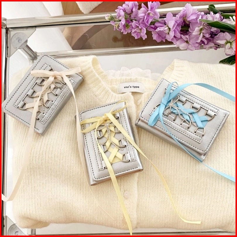 Ballet Ribbon Wallet Dompet Lipat Wanita Pu Leather Pita Silver Coquette Aesthetic Y2k Ballet Style