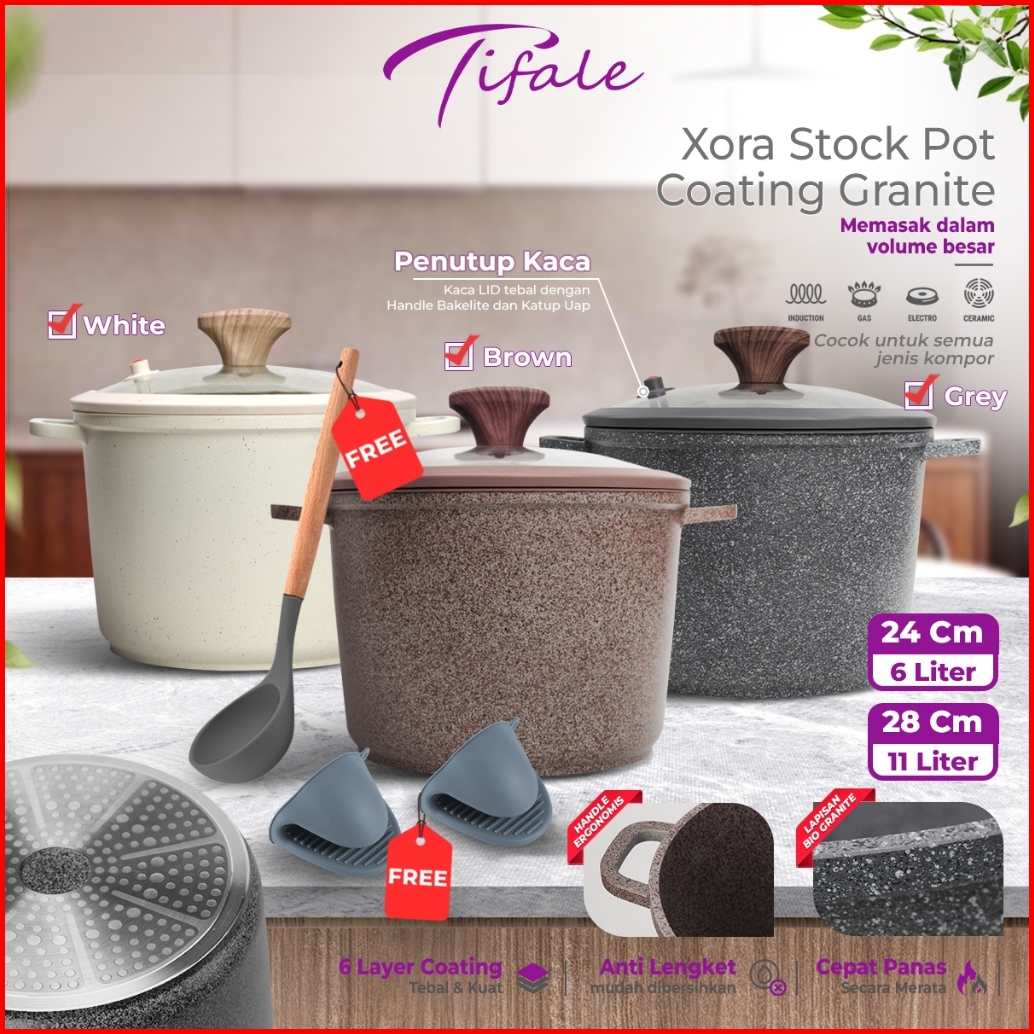 Exclusive Launch Kak Lila Tifale Xora Stock Pot Panci Susu Gentong Besar 24cm 28cm With Glass Lid Anti Lengket