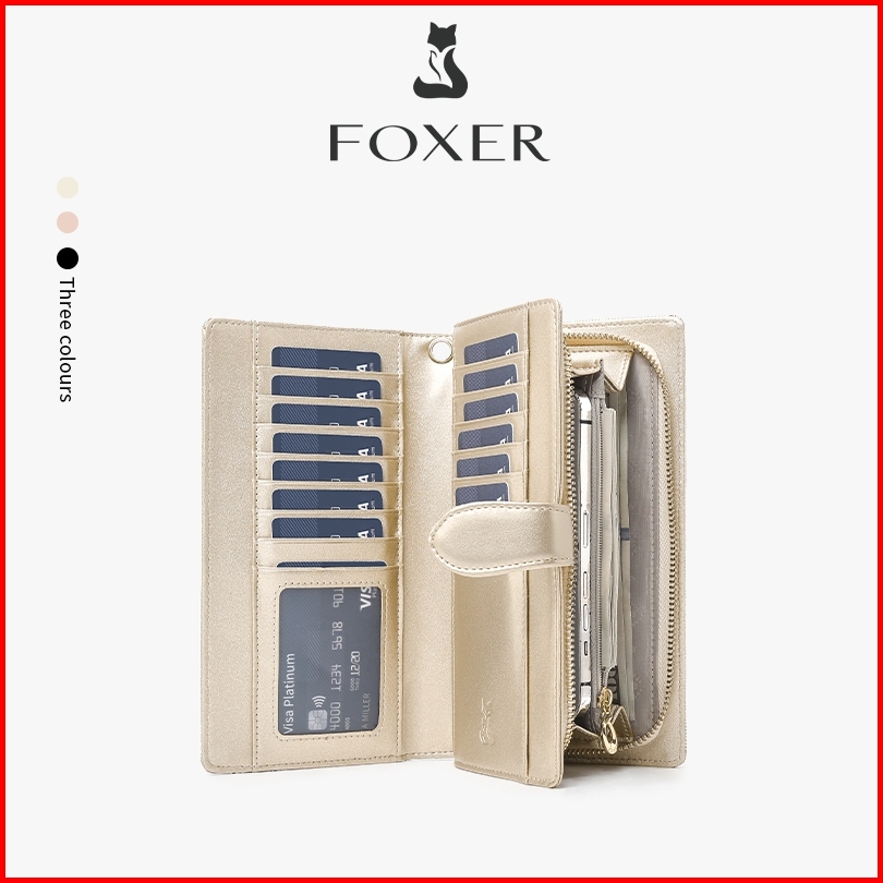 Foxer Dompet Kulit Asli Dompet Panjang Dompet Wanita Berkapasitas Besar Tempat Kartu Kredit