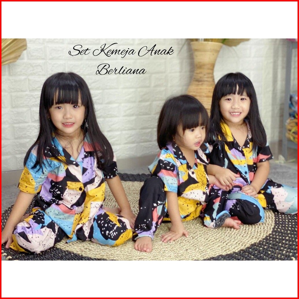 Pusat Mukena Indonesia - Set Piyama Anak Kemeja Rayon Motif Berliana