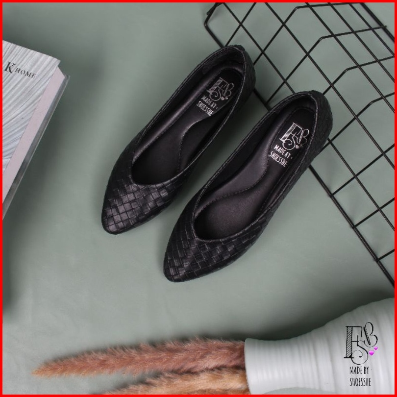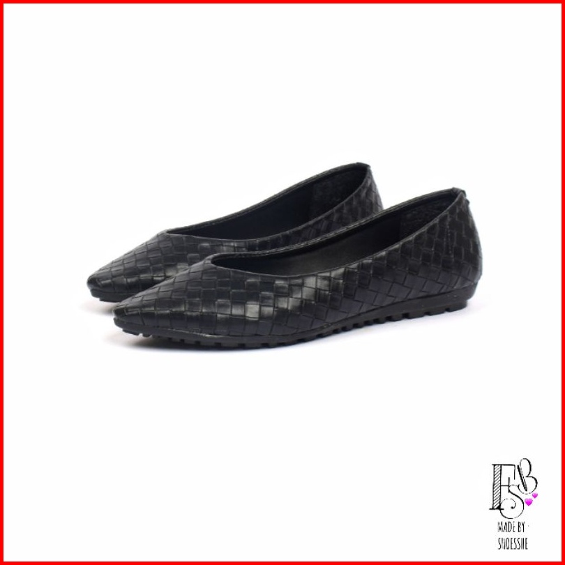 Fsb - Alisha On Black Sepatu Flat Shoes Wanita