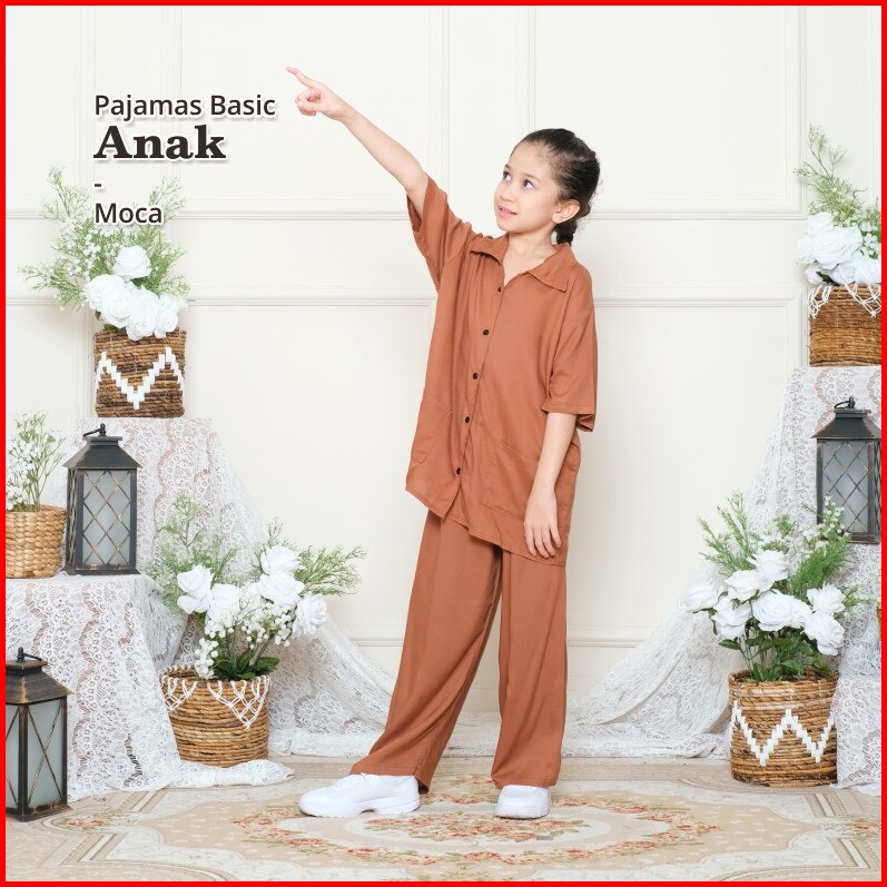 Pusat Mukena Indonesia - Piyama Kemeja Pajamas Set Basic Rayon Polos Anak