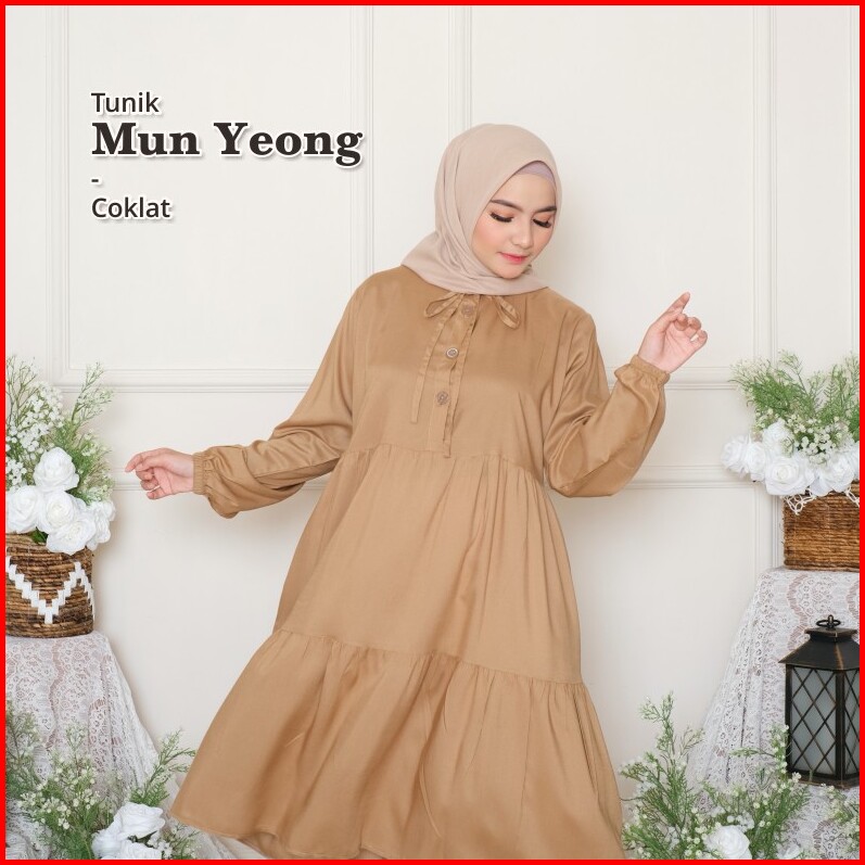 Pusat Mukena Indonesia - Tunik Dress Wanita Korea Busui Friendly Motif Mun Yeong