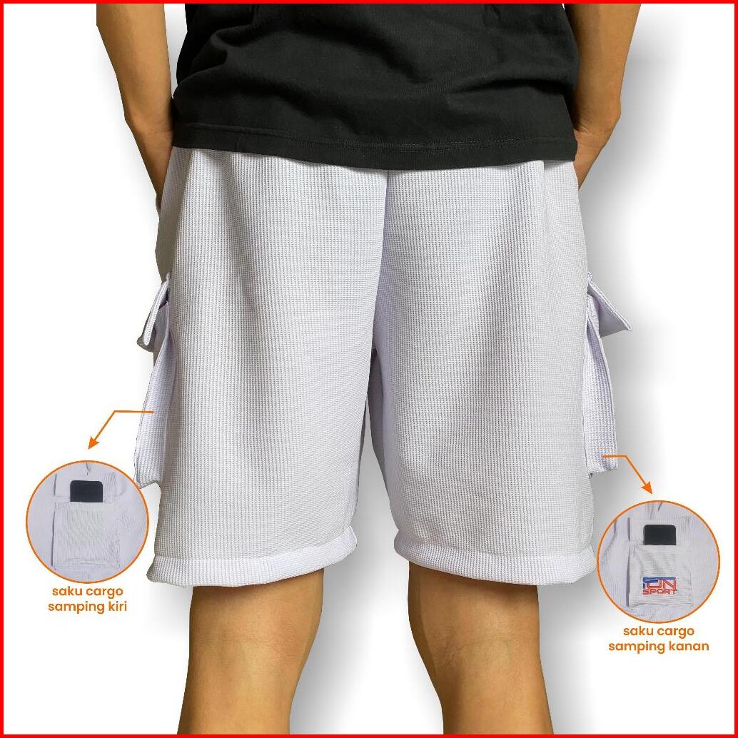 Celana Cargo Pendek Pria Bahan Waffel Premium Hitam - Sport Dewasa Casual Shorts - Cowok Santai