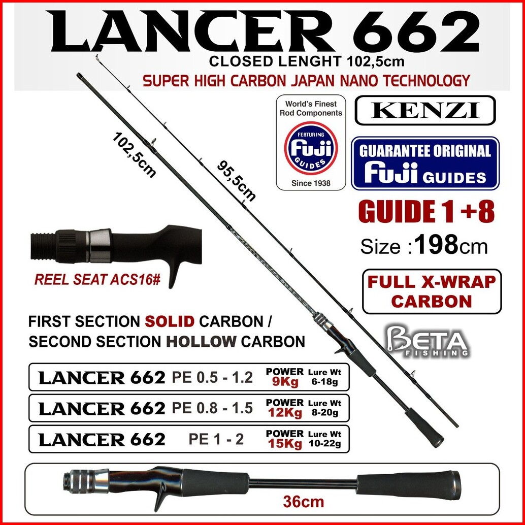 Rod Joran Kenzi Lancer Ca 662 Bahan Japan Quality Solid Carbon X-wrap