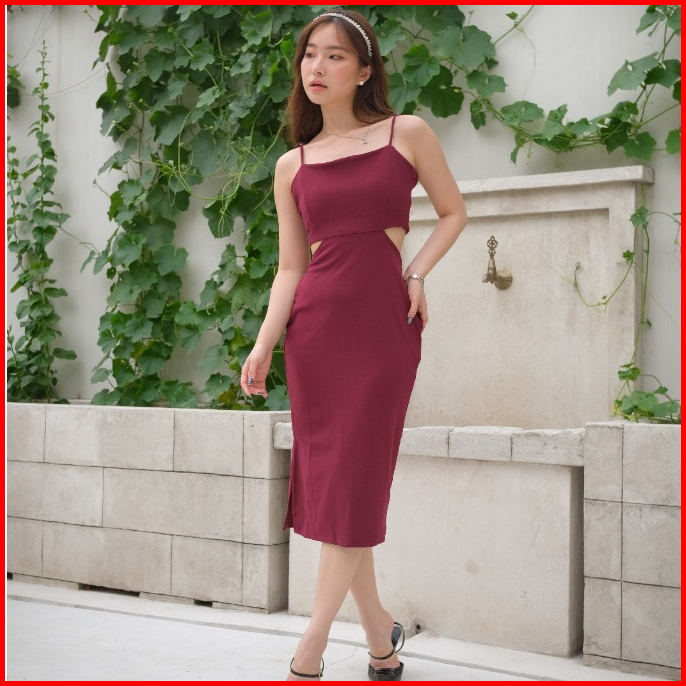 Kiyorawears - Odelia Cut Out Dress Midi Dress Wanita Korea Style Party Dress