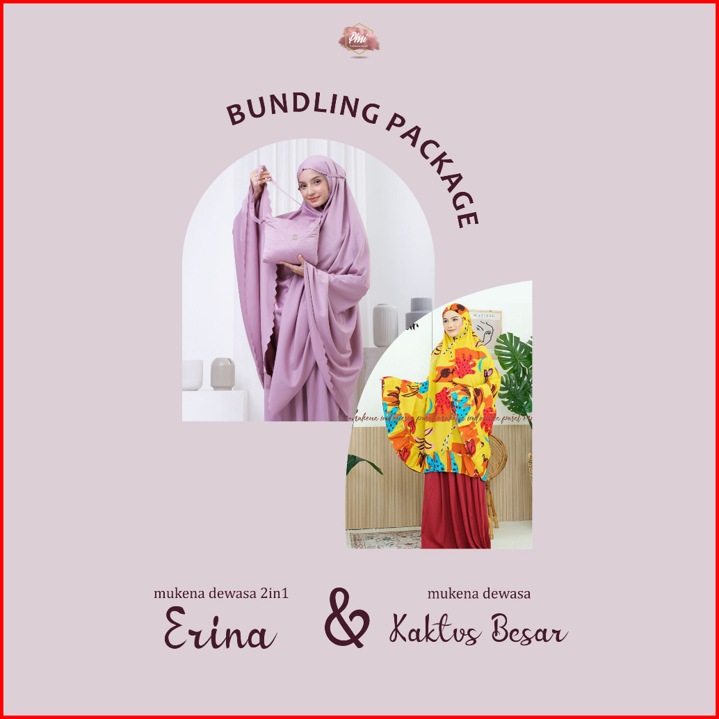 Bundling Package Mukena Dewasa 2in1 Satin Silk Erina Dan Mukena Rayon Dewasa Kaktus Besar