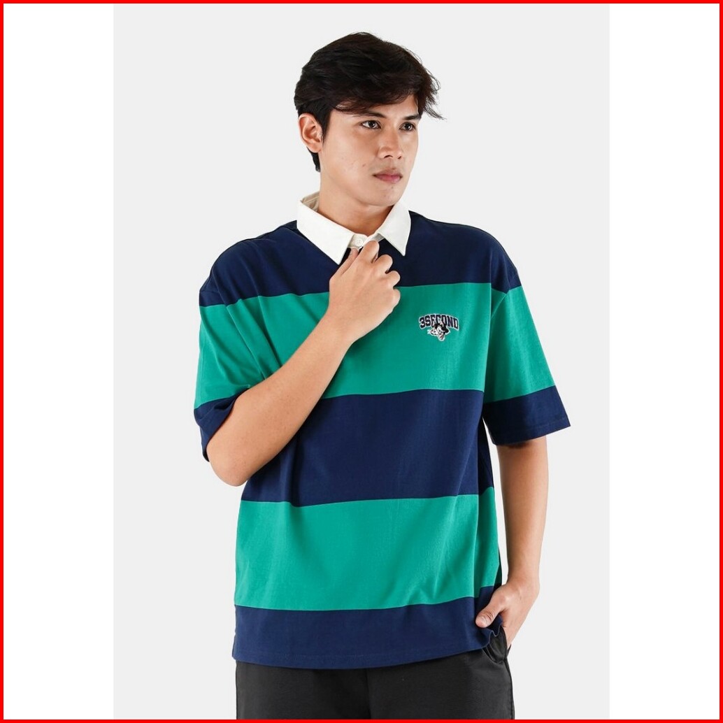 3second Kaos Polo Oversized Fit Lengan Pendek Stripe C011023