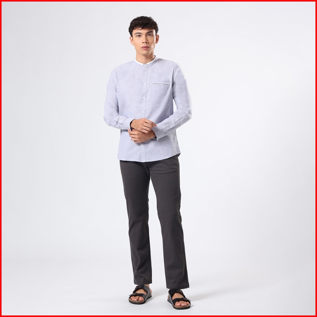 Edwin Jeans - Kemeja Koko Pria Lengan Panjang Erden Grey Baju Muslim Pria