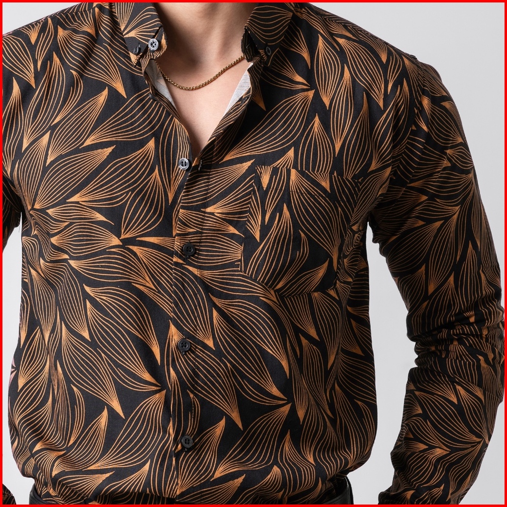 Vengoz Atasan Kemeja Pria Printing Slim Fit - Leaves Ls