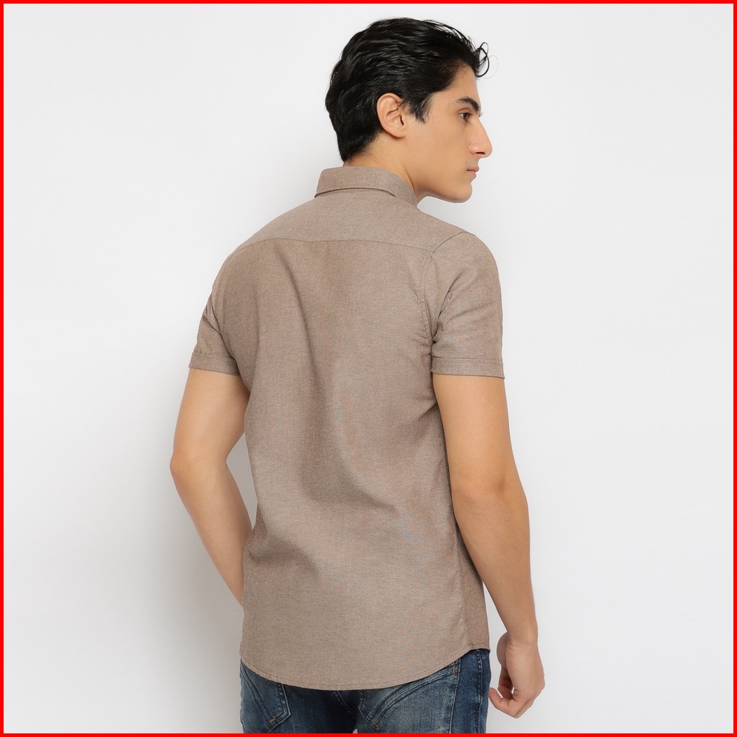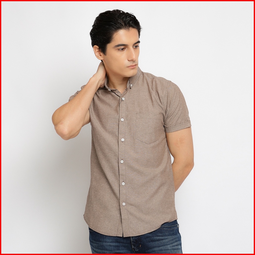 Vengoz Kemeja Oxford Pria Lengan Pendek Slim Fit - Brown