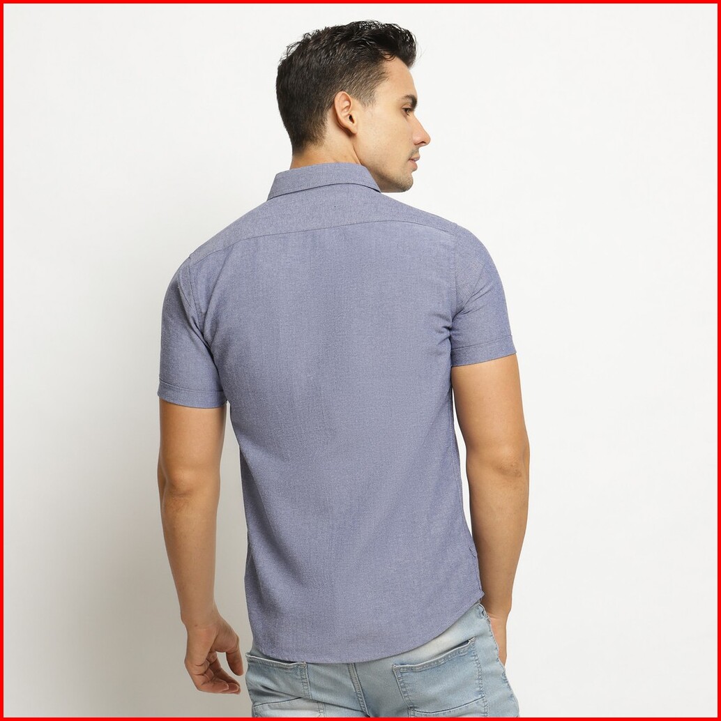 Vengoz Kemeja Oxford Pria Lengan Pendek Slim Fit - Blue
