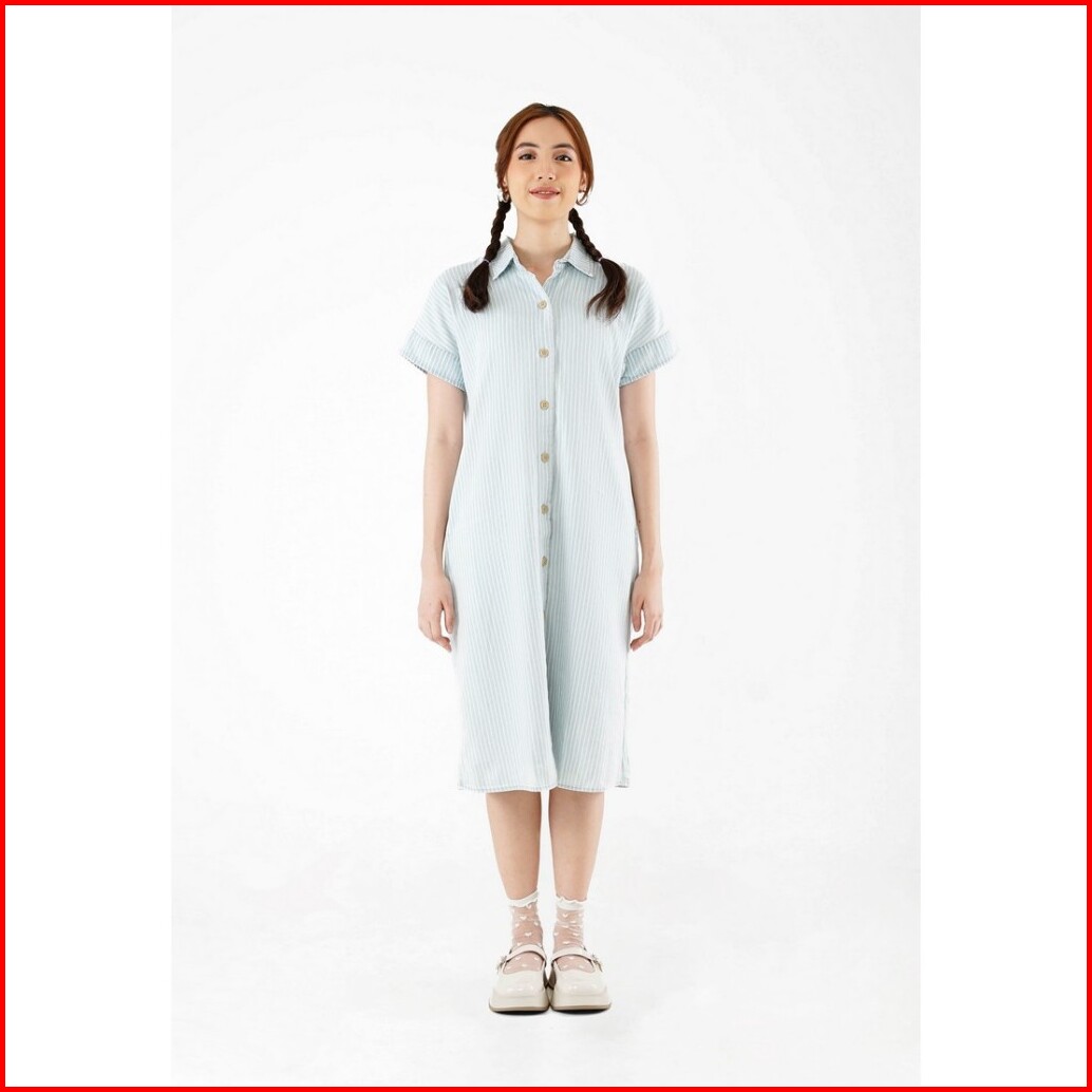 3second Shirt Dress A-line Garis-garis Drop Shoulder 031123