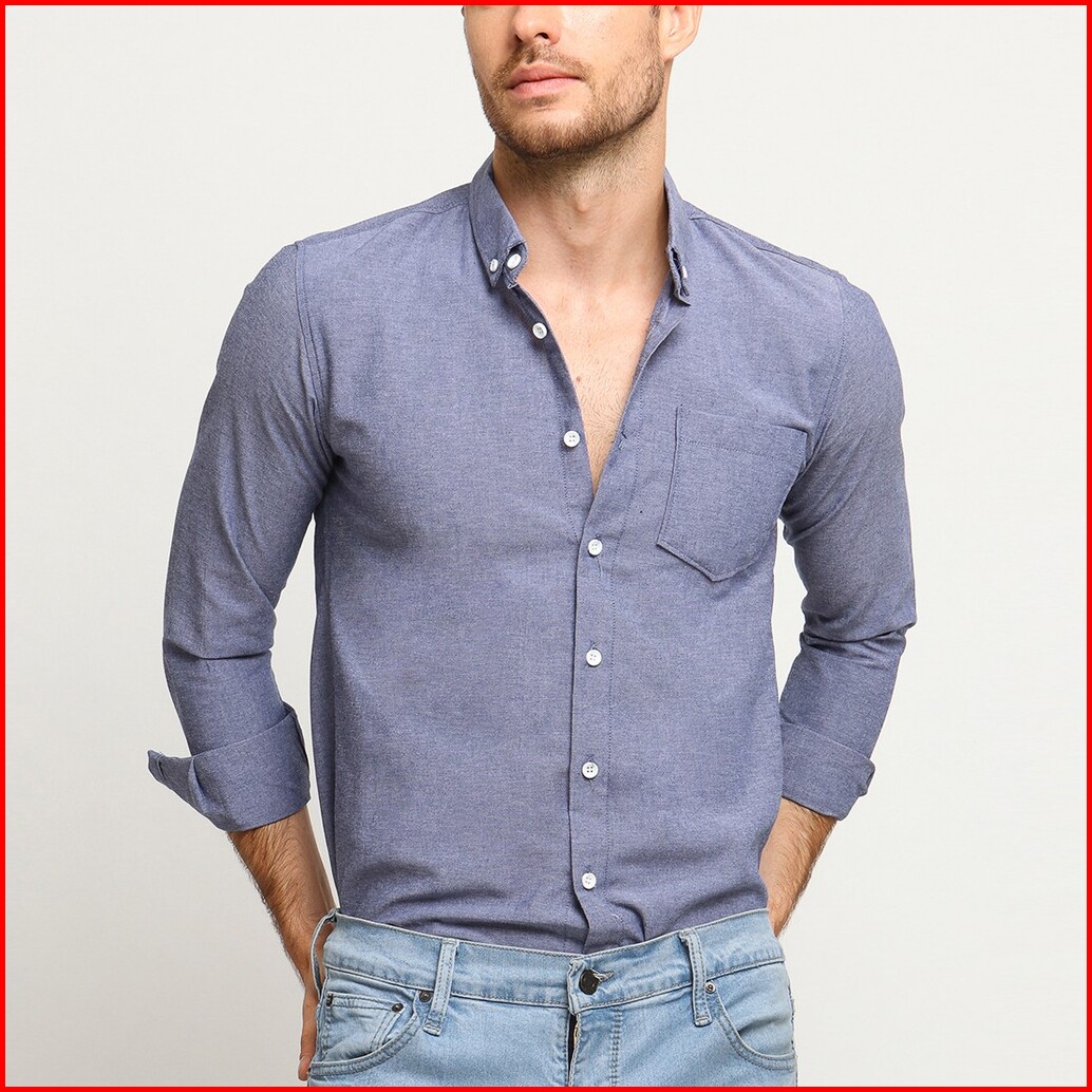 Vengoz Kemeja Oxford Pria Slim Fit - Blue