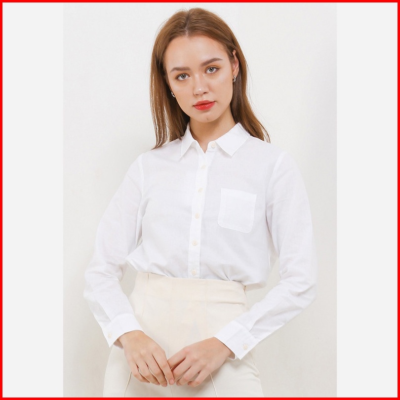 Giordano Long Sleeve Linen Cotton Shirt Wanita