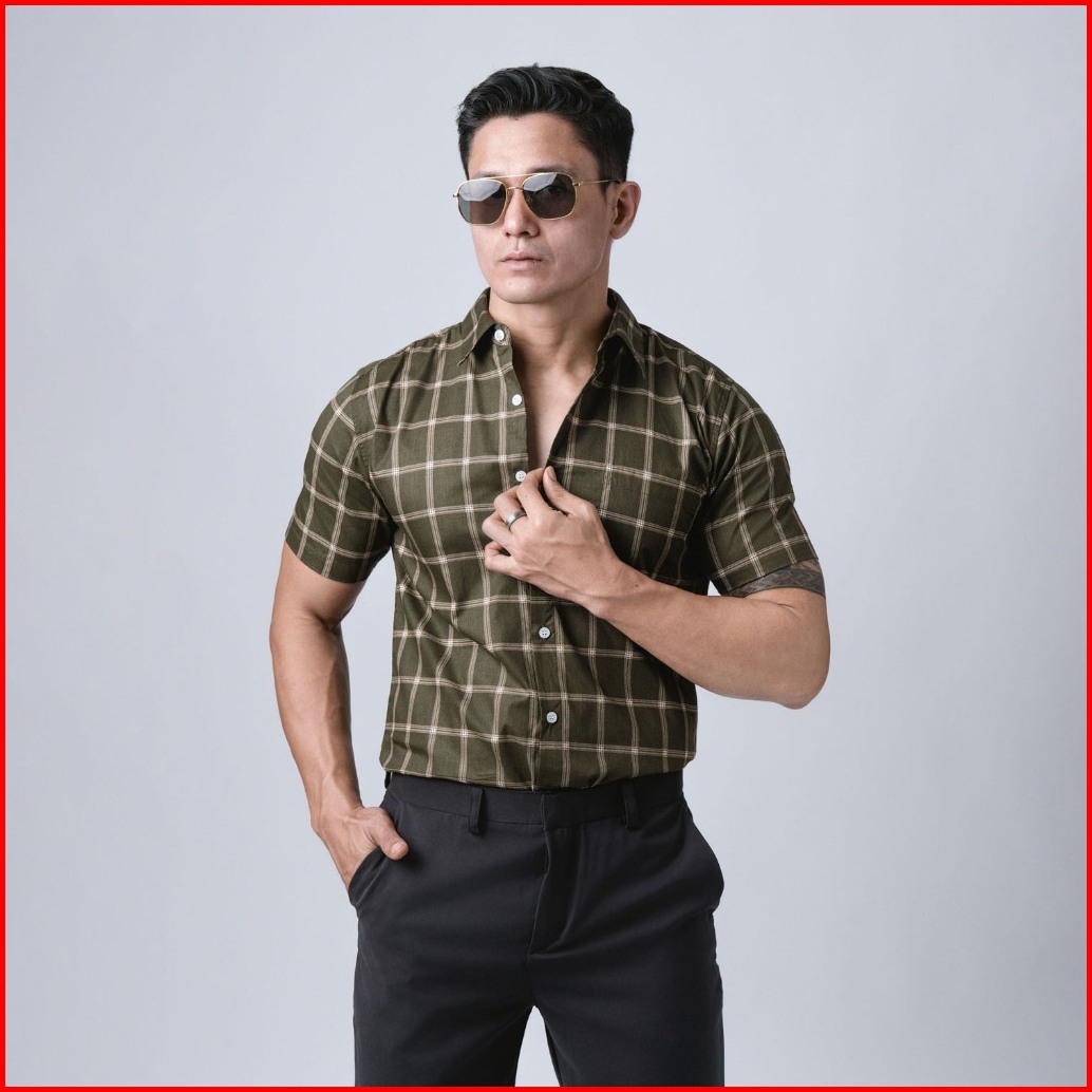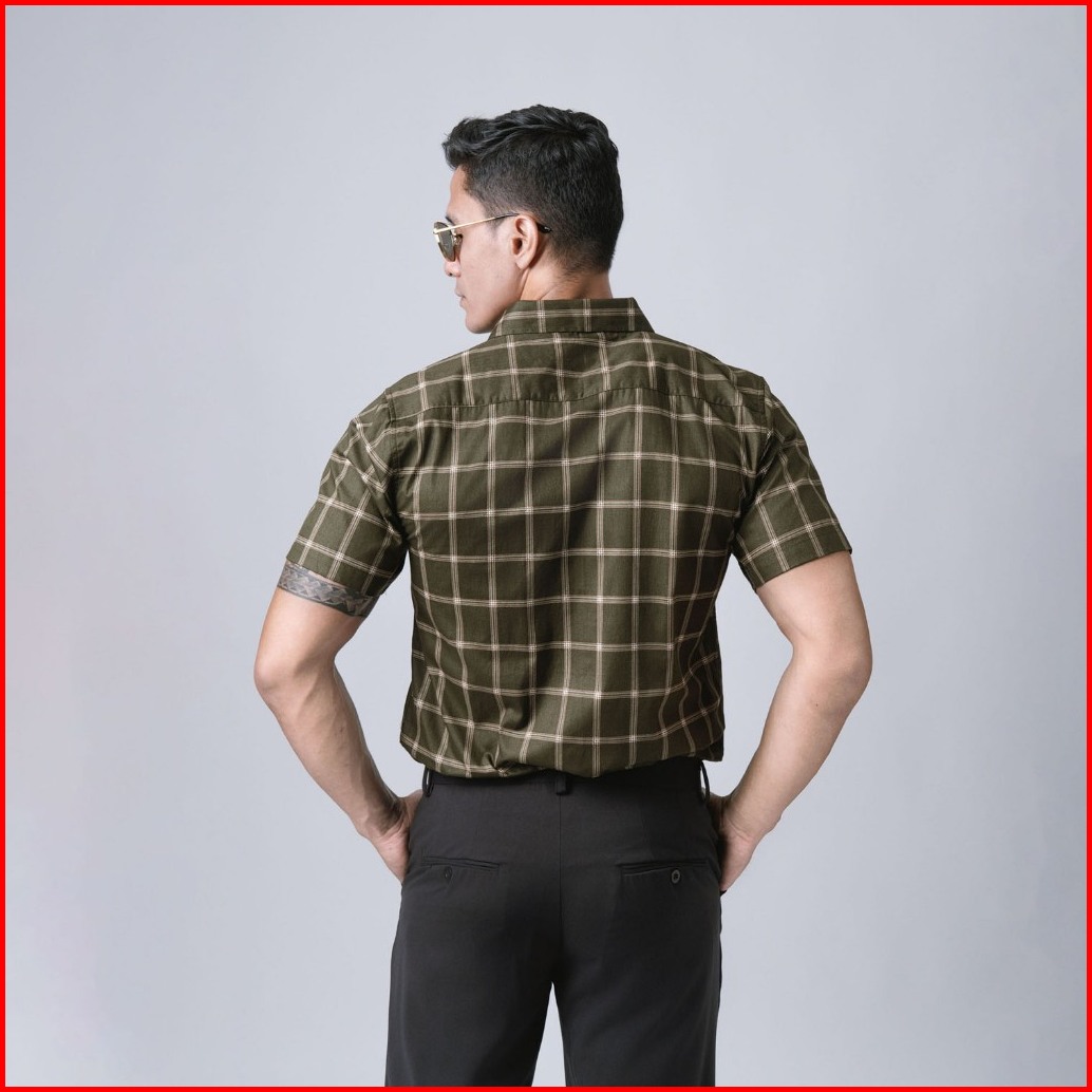 Vengoz Kemeja Pria Slim Fit - Roma Plaid Shirt Dark Green Ss