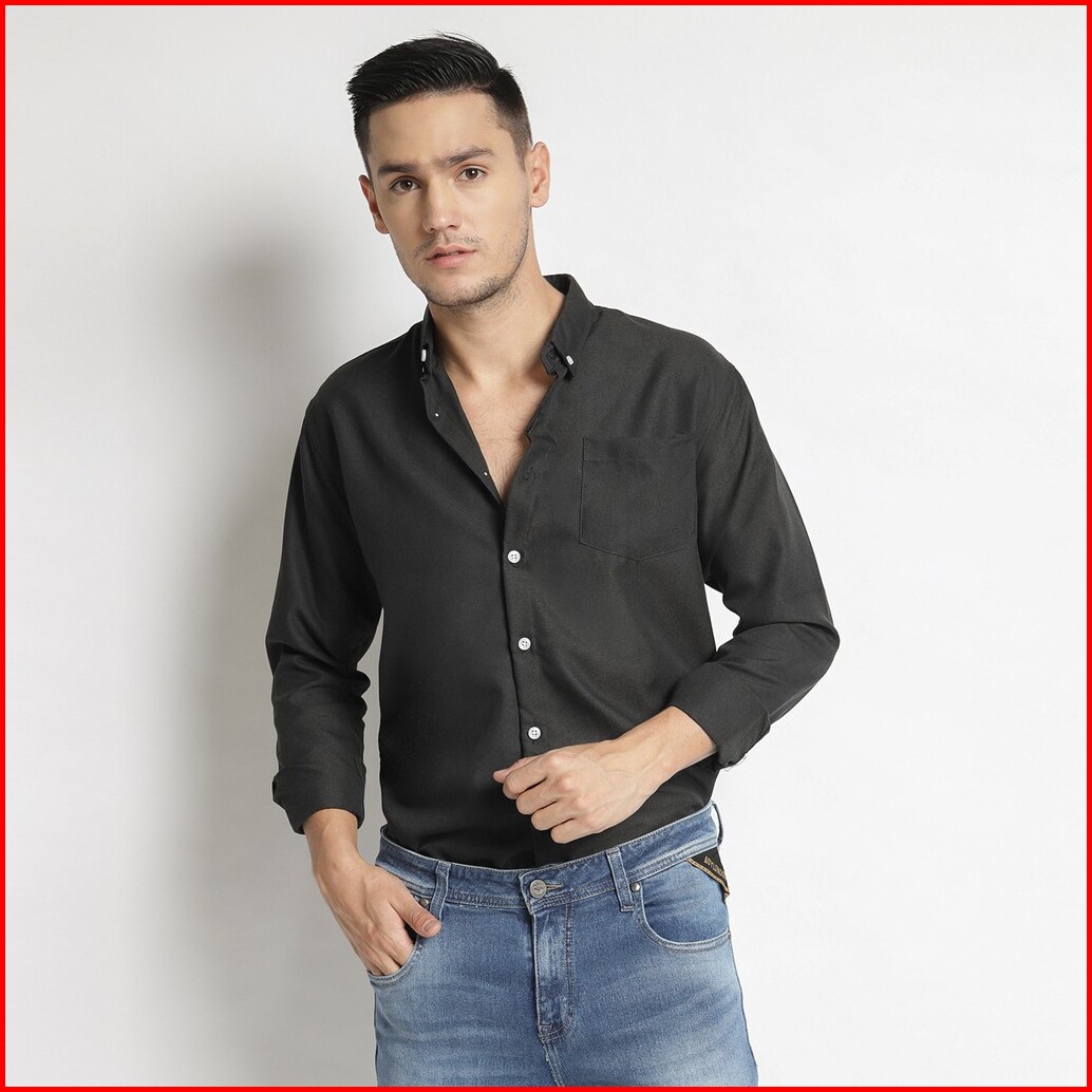 Vengoz Kemeja Pria Slim Fit Premium- Solid Black Ls