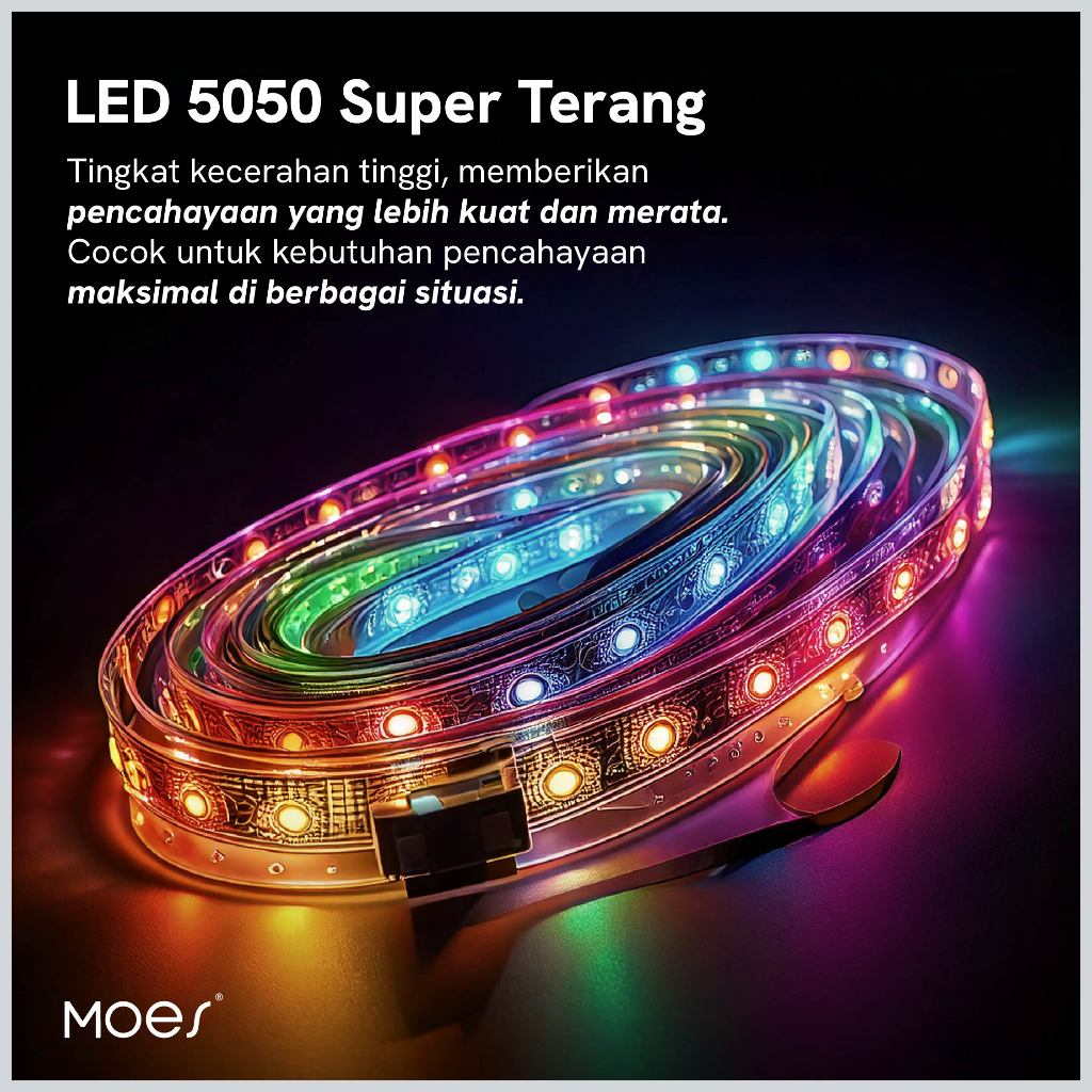 Moes Smart LED Strip RGB Lengkap dengan Remote Lampu Dekorasi Kamar Lampu Natal Hiburan