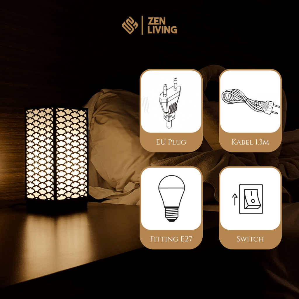 Lampu Aesthetic Quare Meja Kamar Tidur Elegan Minimalis Motif Oriental Bohlam LED Fitting E27