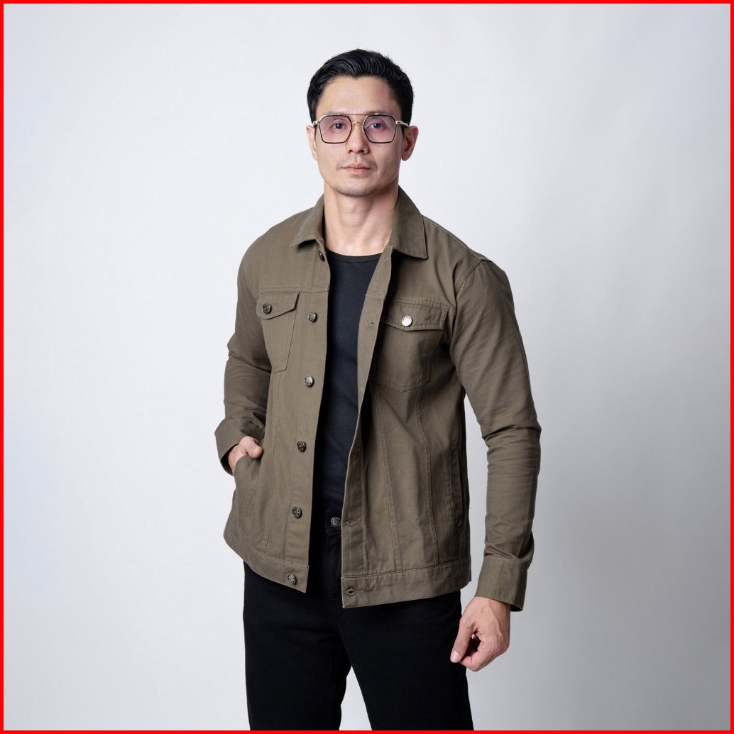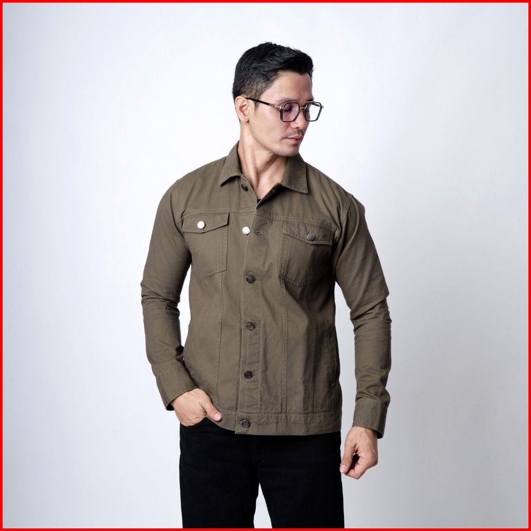 Vengoz Jacket Trucker Pria Cotton Twill Premium - Green Army