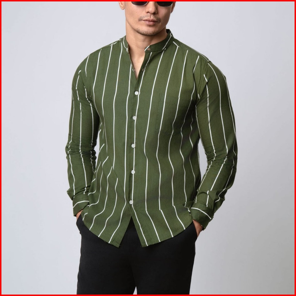Vengoz Atasan Kemeja Pria Shanghai Slim Fit - Vicente Stripe Army Green Ls