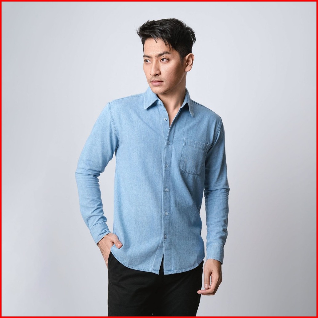 Vengoz Kemeja Jeans Pria - Mens Denim Shirt Ls Soft Blue