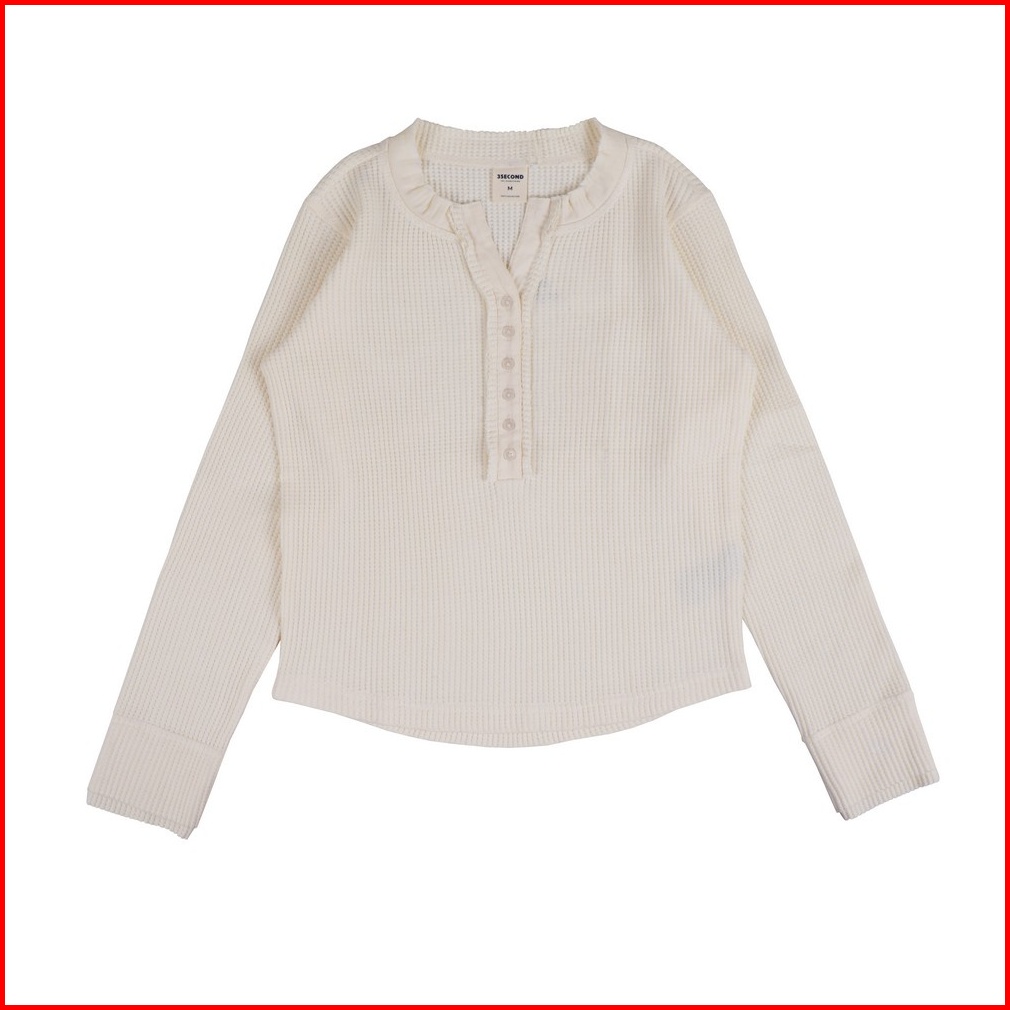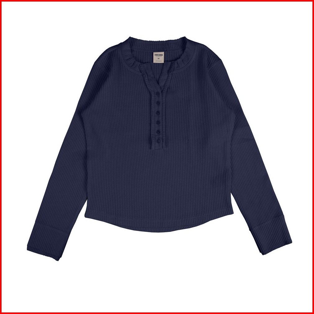 3second Kemeja Blus Wanita Katun Waffle Kerah Bulat Half Zip C010823