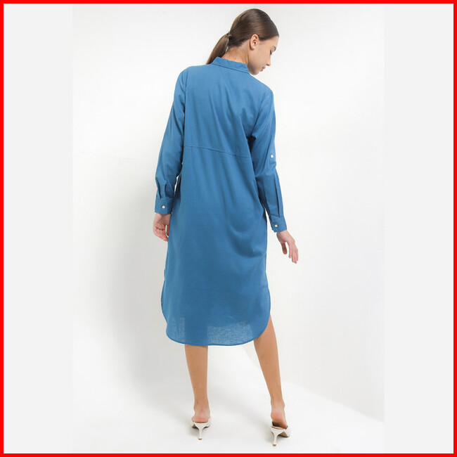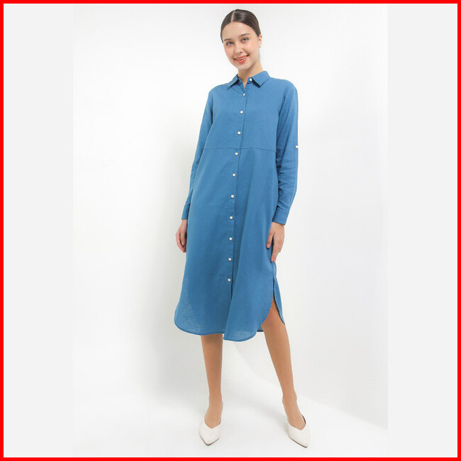 Giordano Long Sleeve Linen Dress Wanita