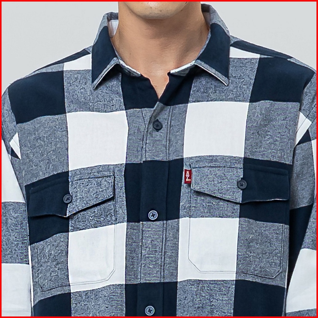Edwin Jeans - Kemeja Flannel Pria Lengan Panjang Bastien Navy White