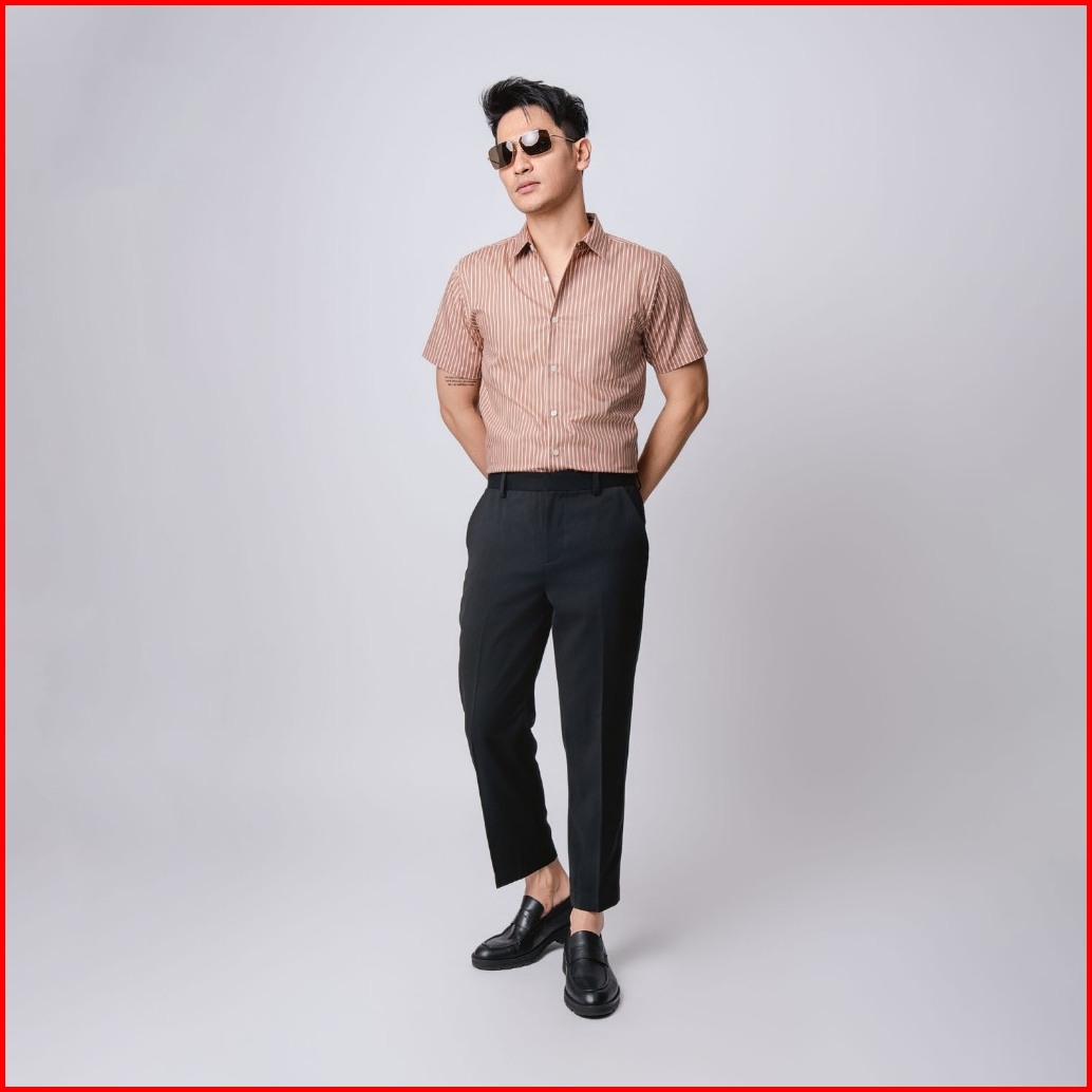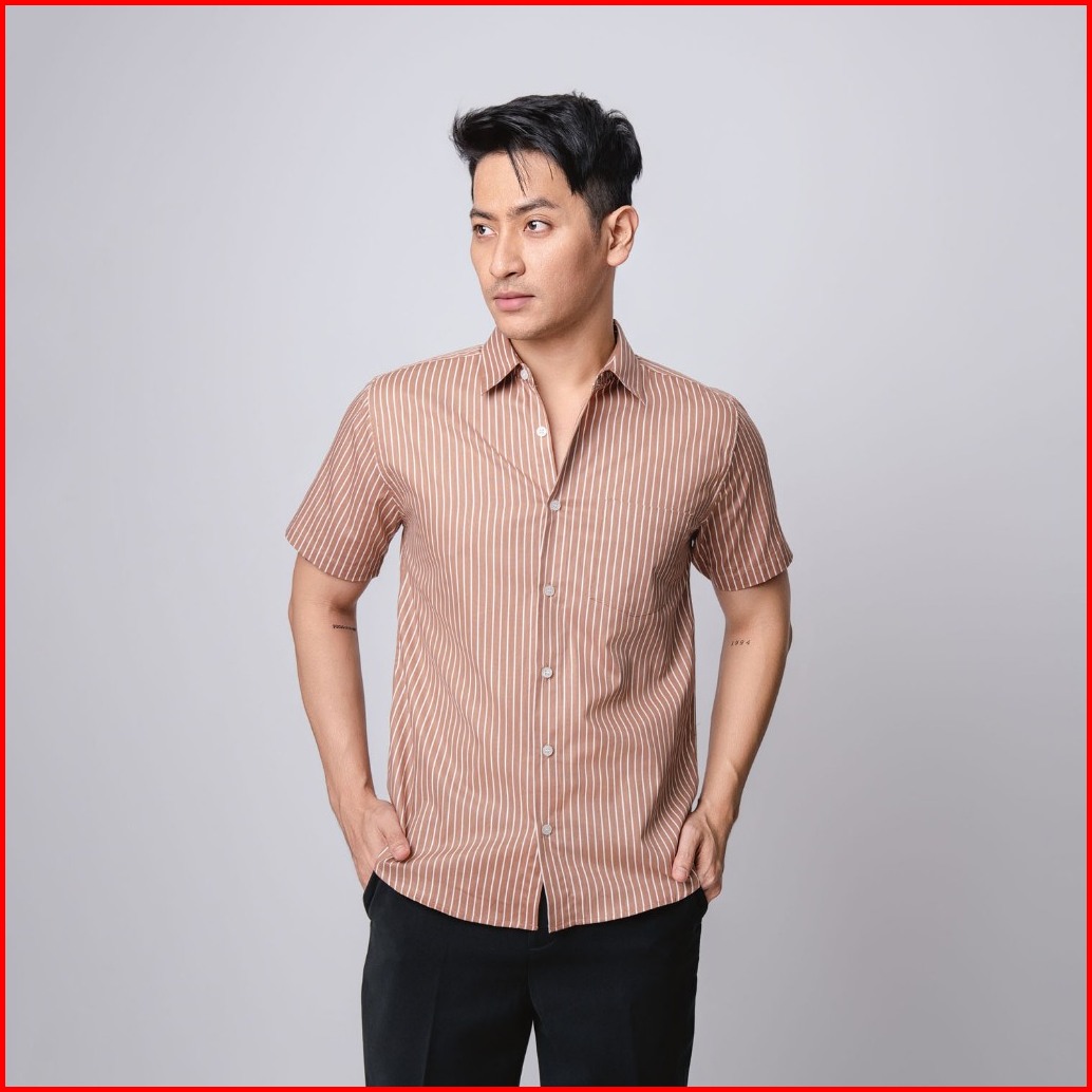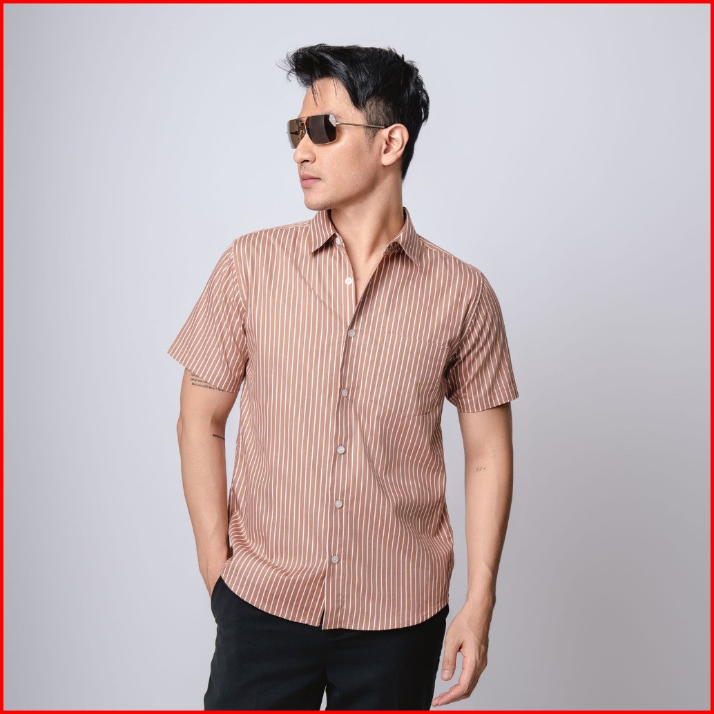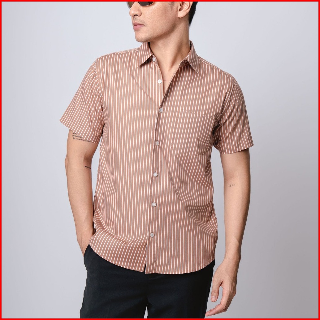 Vengoz Kemeja Pria Slim Fit - Hugo Stripe Shirt Brown Ss