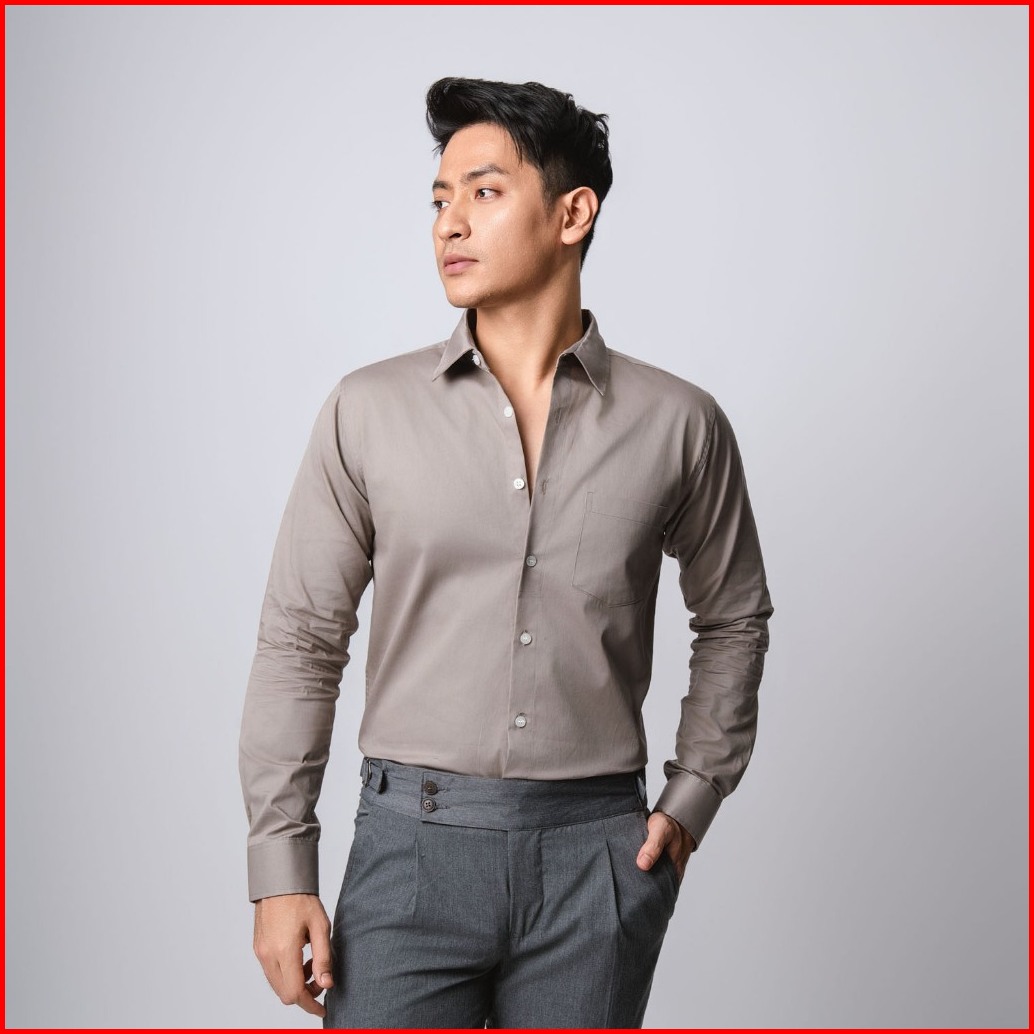 Vengoz Kemeja Pria Cotton Twill Premium - Dark Beige Ls