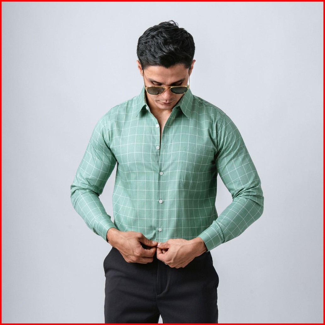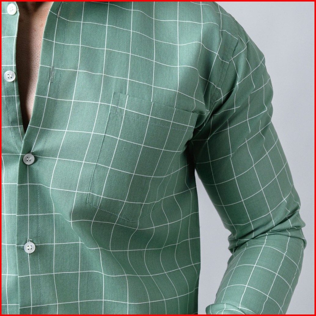 Vengoz Kemeja Pria Slim Fit - Hector Plaid Shirt Sage Green Ls