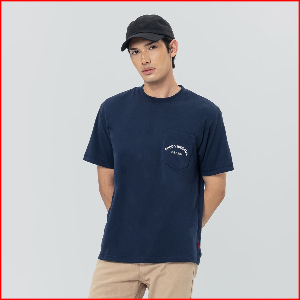 Edwin Jeans - Chester Dark Navy Tshirt Casual Baju Kaos Pria Lengan Pendek Atasan Warna Navy T-shirt Graphic Tee