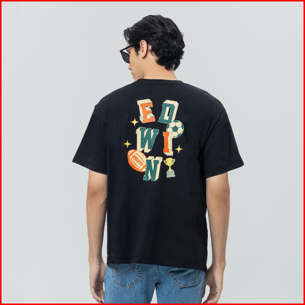 Edwin Jeans - Winner Jet Black Tshirt Casual Baju Kaos Pria Lengan Pendek Atasan Warna Hitam T-shirt Graphic Tee