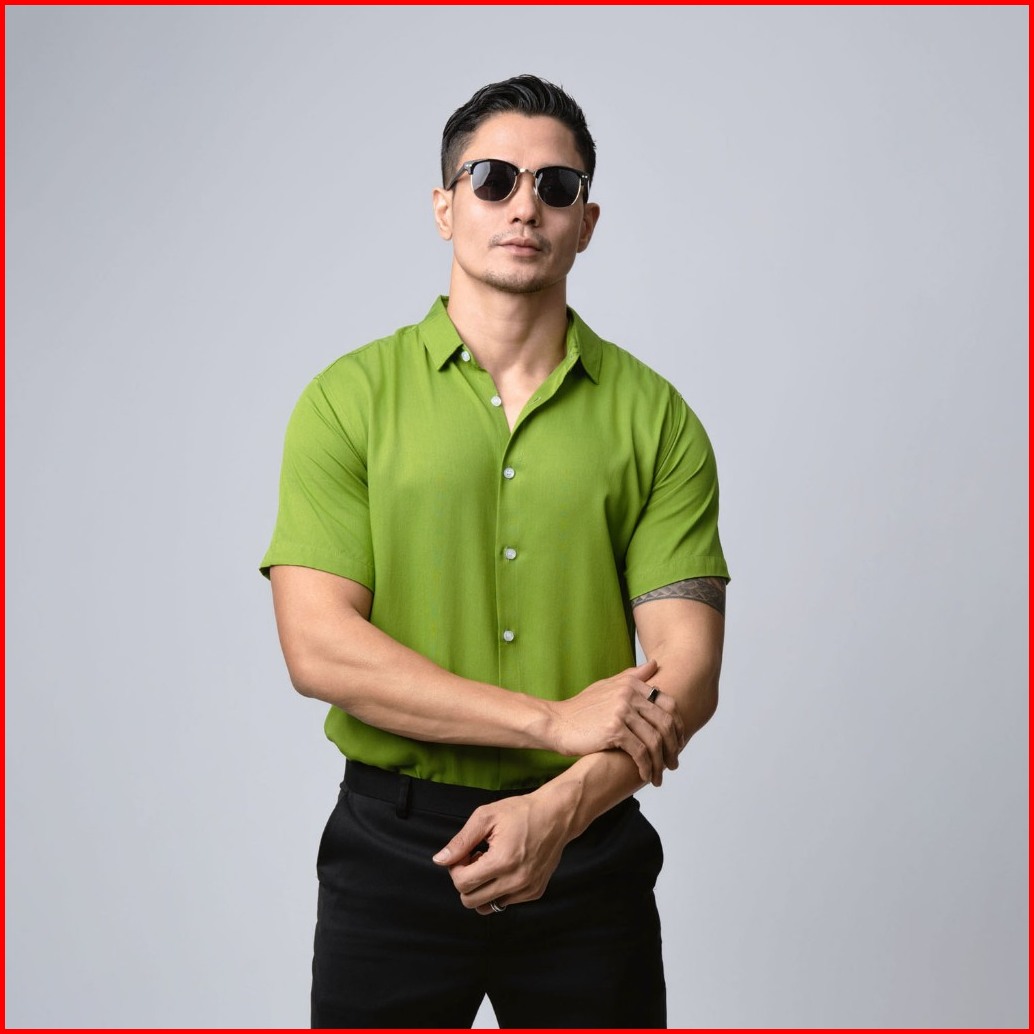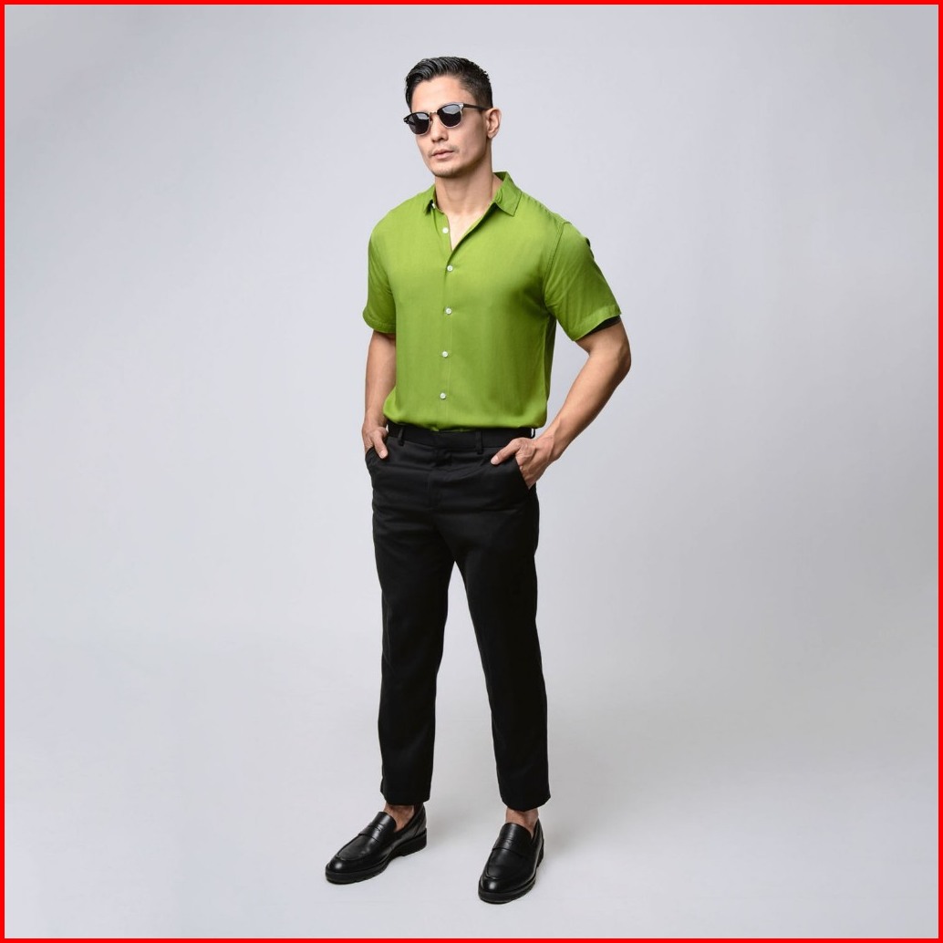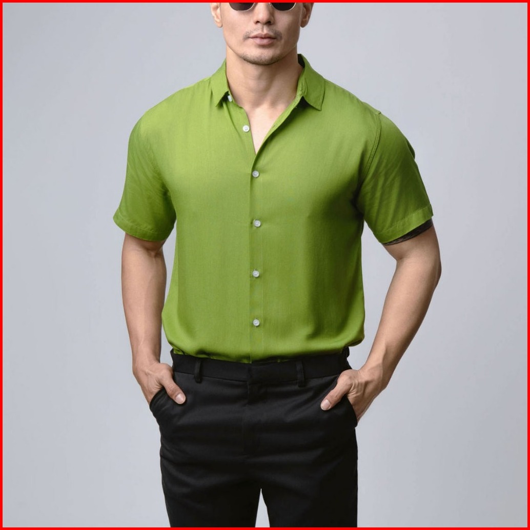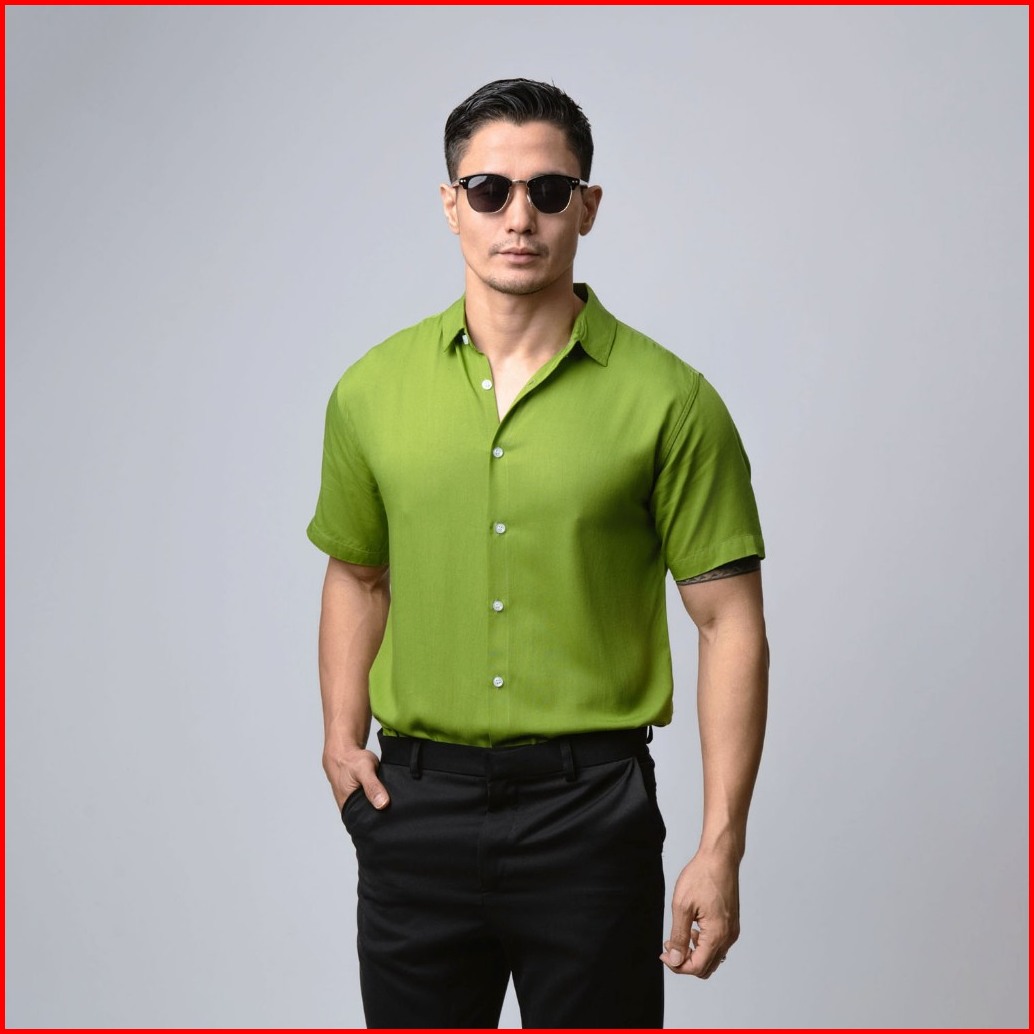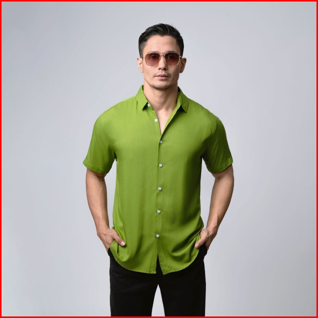 Vengoz Kemeja Pria Pendek Slim Fit - Viscose Olive Green Ss