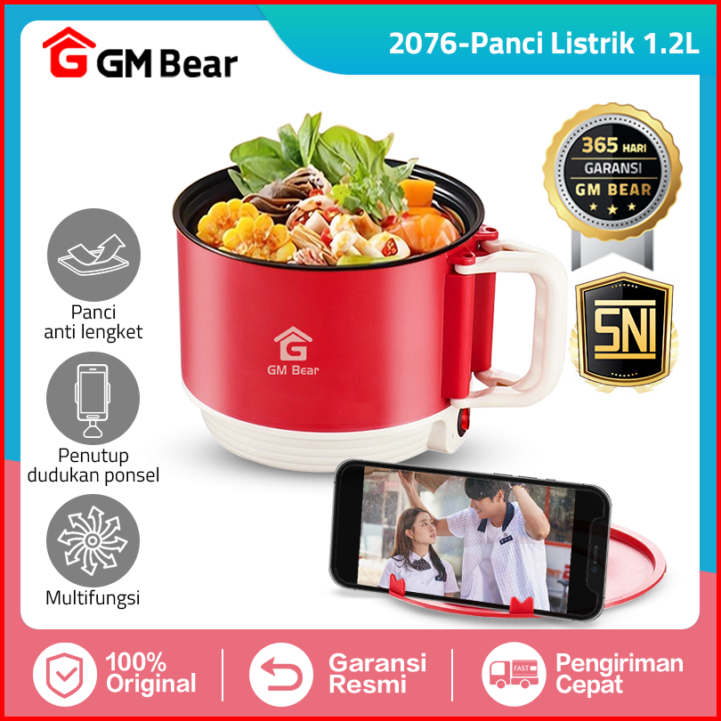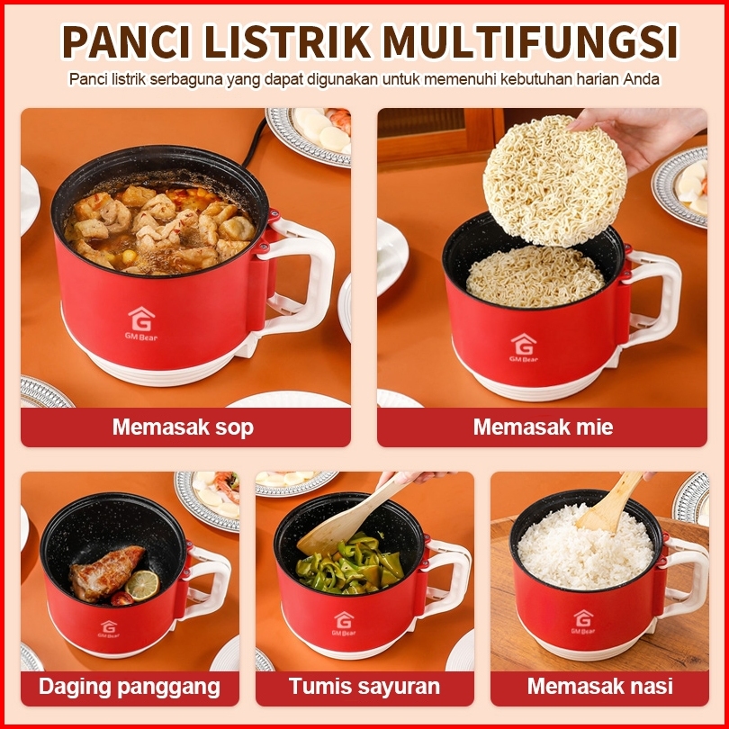 Gm Bear Panci Listrik Multifungsi 2076 - Panci Elektrik 1.2 Liter Free Steamer Panci Keramik 2in1 Serbaguna