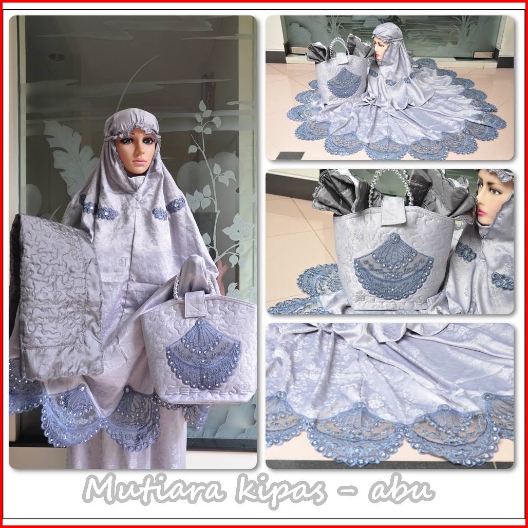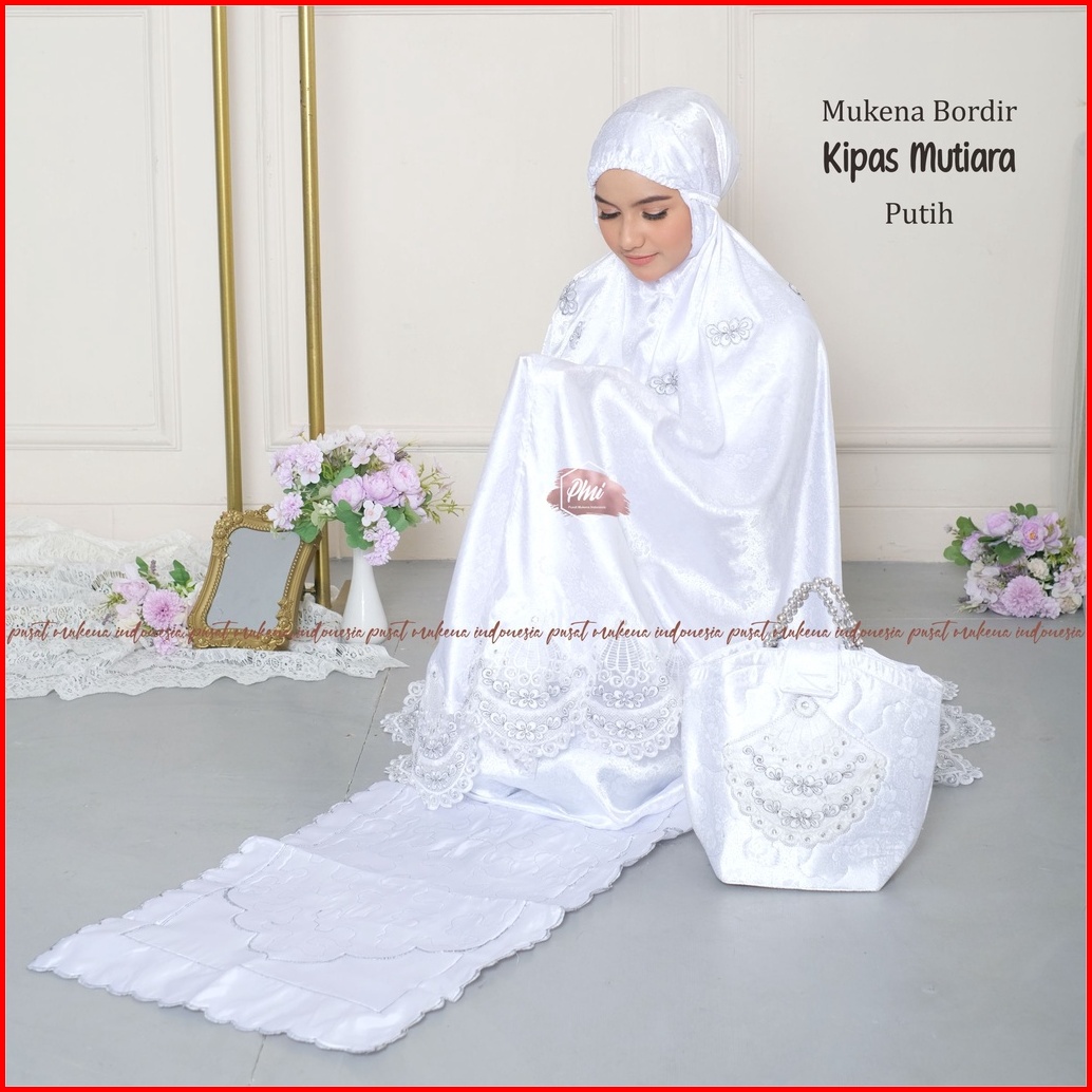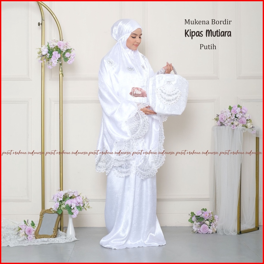Pusat Mukena Indonesia - Mukena Dewasa Bodir Semi Sutra Kipas Mutiara
