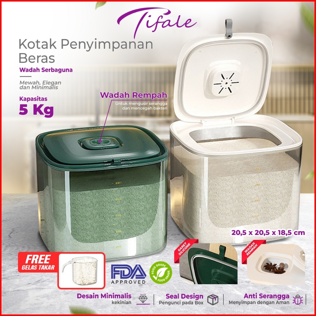 Tifale Kotak Tempat Penyimpanan Beras Bahan Makanan Wadah Dispenser Beras Rice Storage