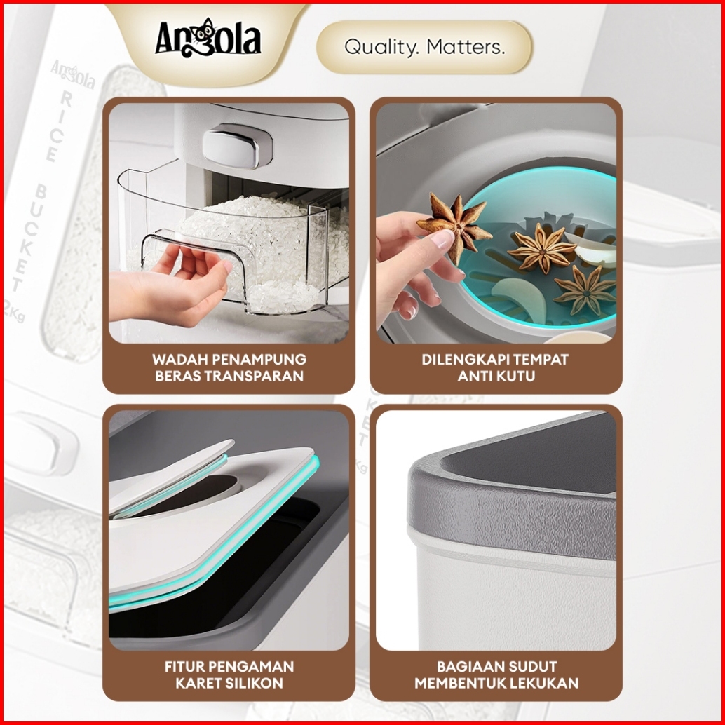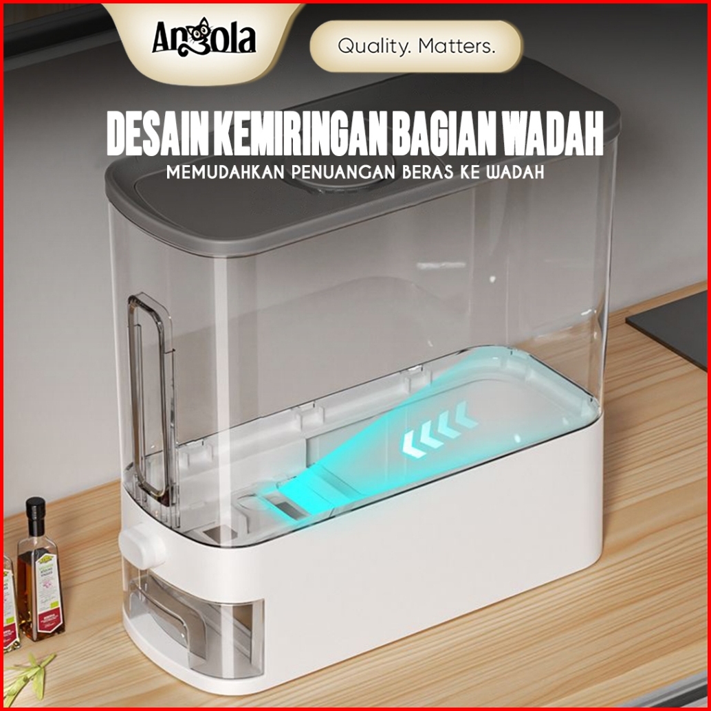 Angola Dispenser Beras Otomatis 6-12kg E13-e14 Tempat Penyimpanan Beras Food Grade